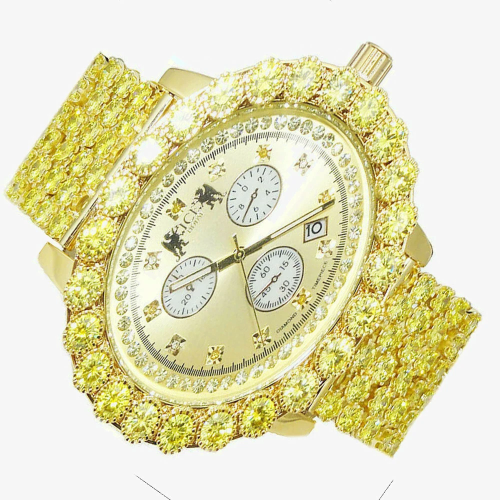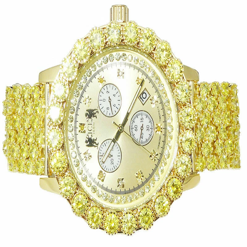 Canary Genuine Diamond Mens Yellow Gold Finish 6 Row Custom Band Ice House Watch