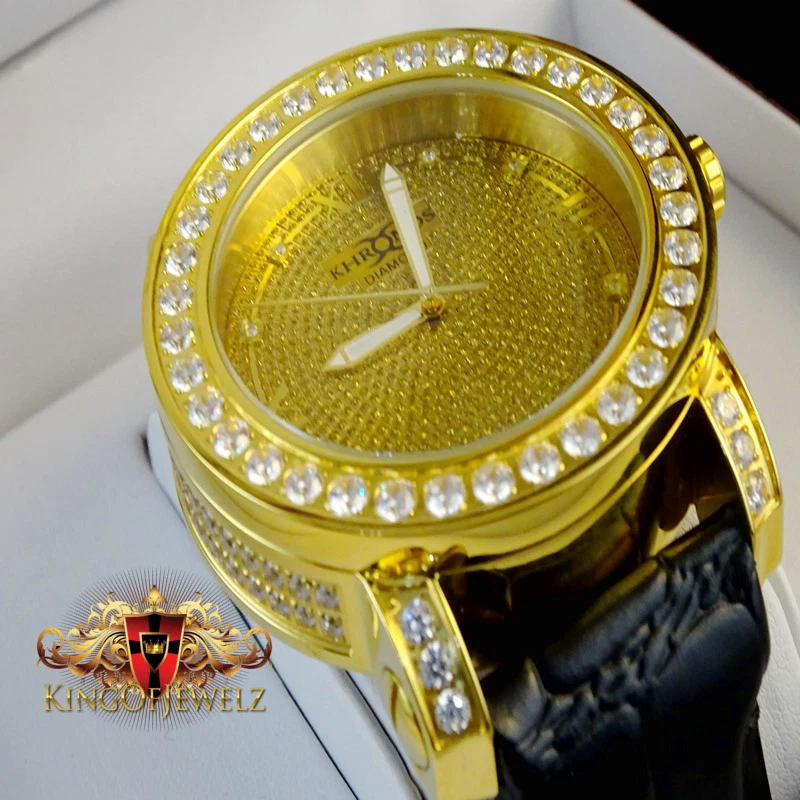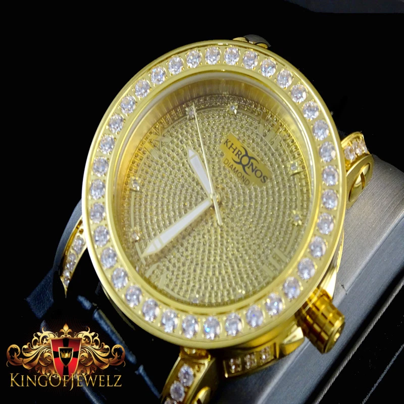 Canary Yellow Khronos Mens Real Diamond Jojino Joe Rodeo 1 Row Bezel Steel Watch