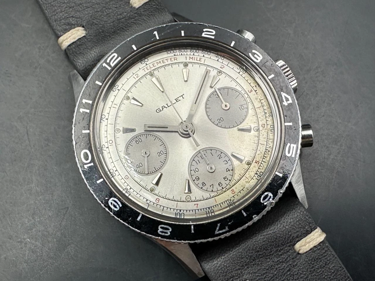 Vintage 1960s Gallet Multichron Pilot Val.72 Chronograph Watch.