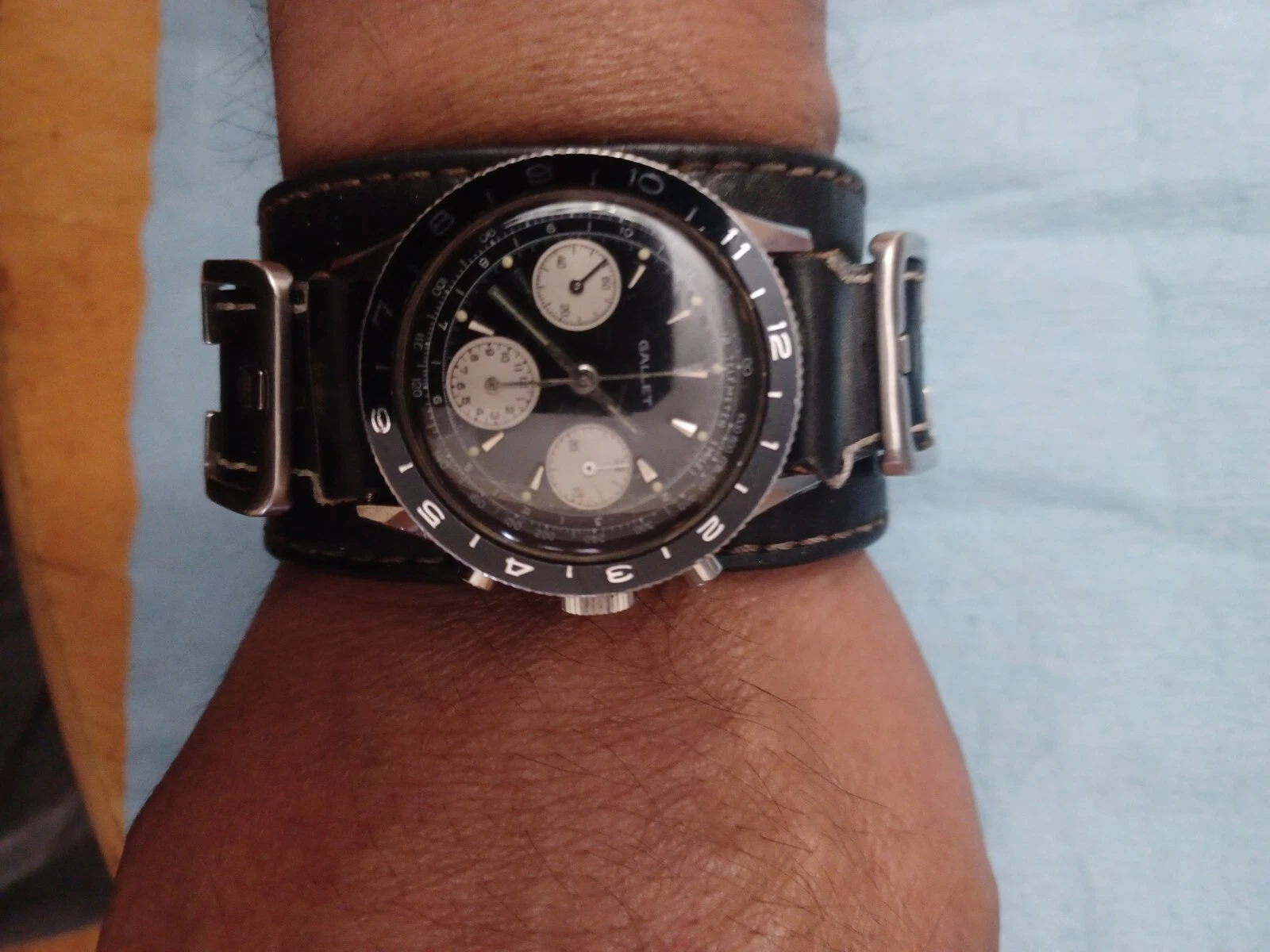 Vintage Gallet MultiChron Pilot Chronograph Stainless Steel Valjoux 72