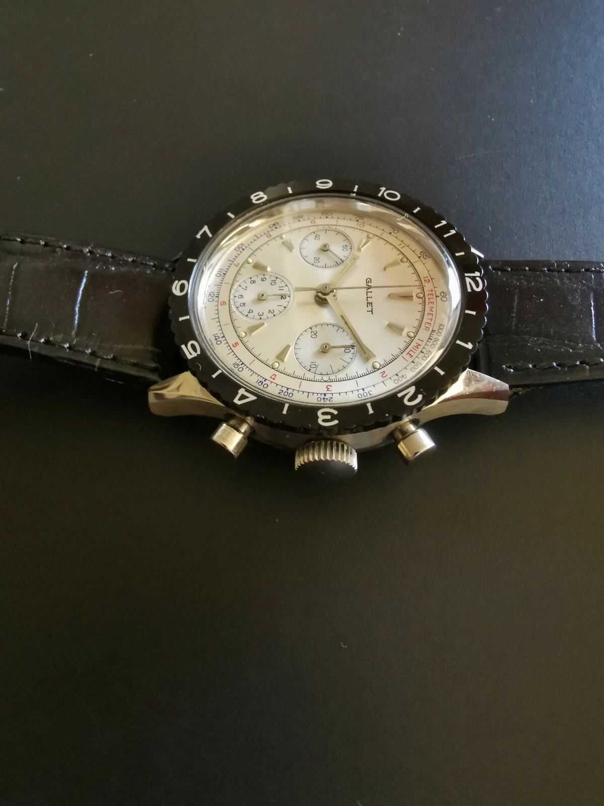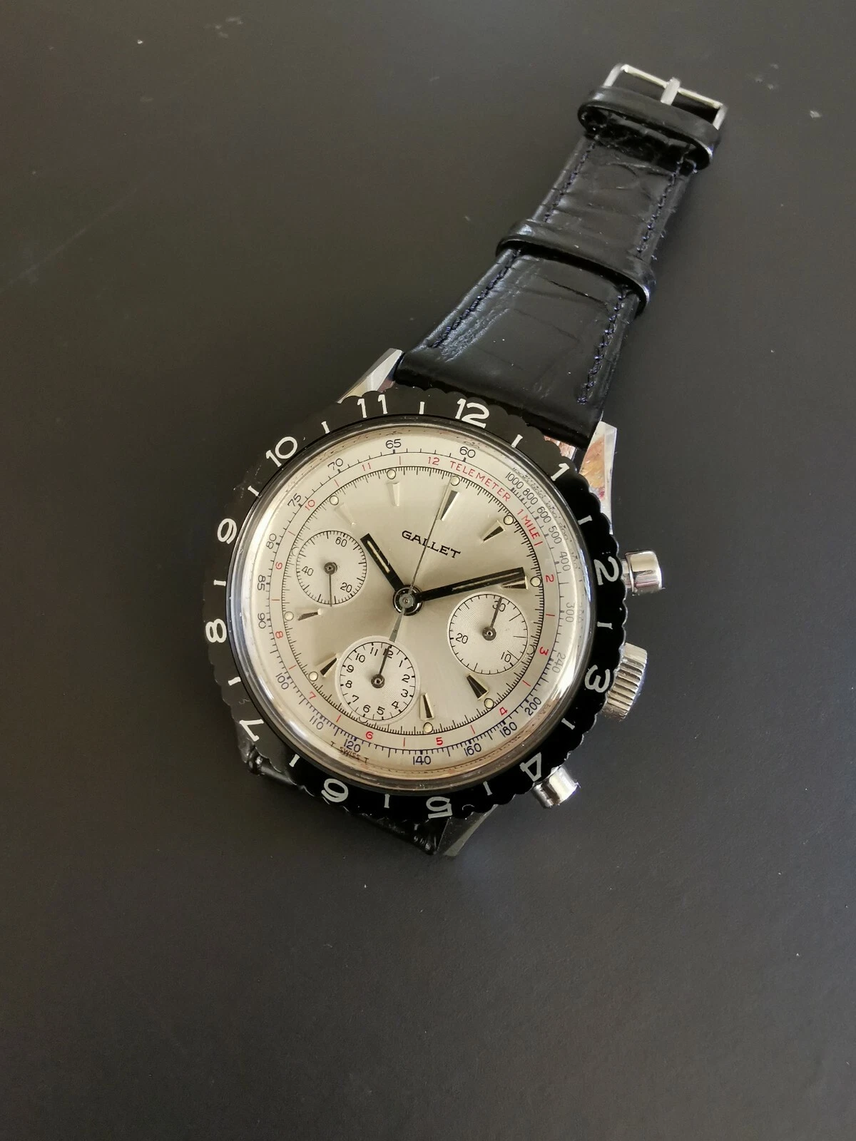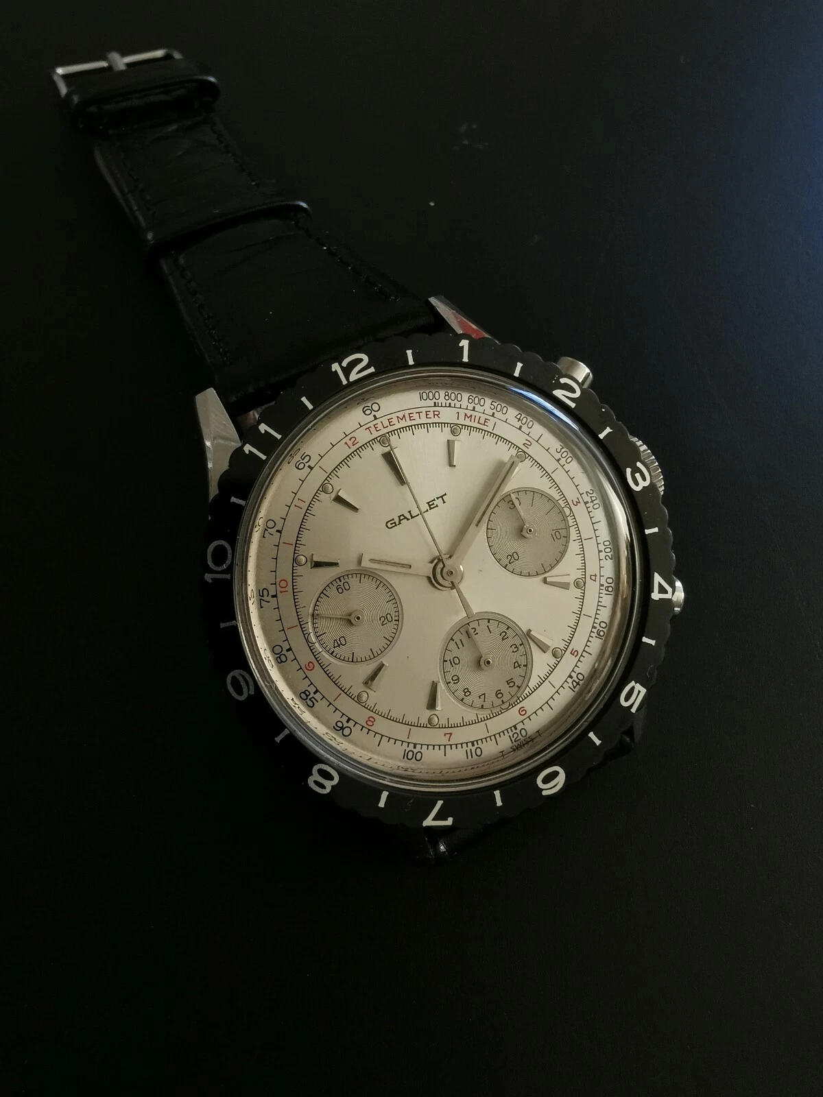 Vintage Gallet MultiChron Pilot Chronograph Stainless Steel Valjoux 72