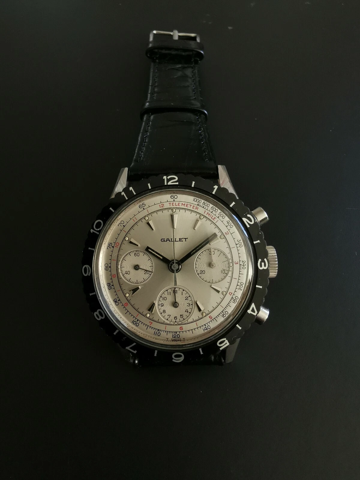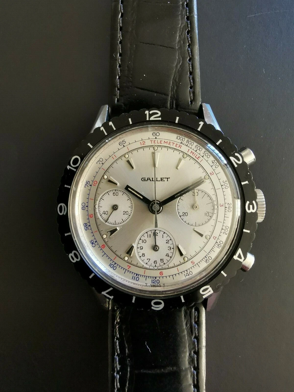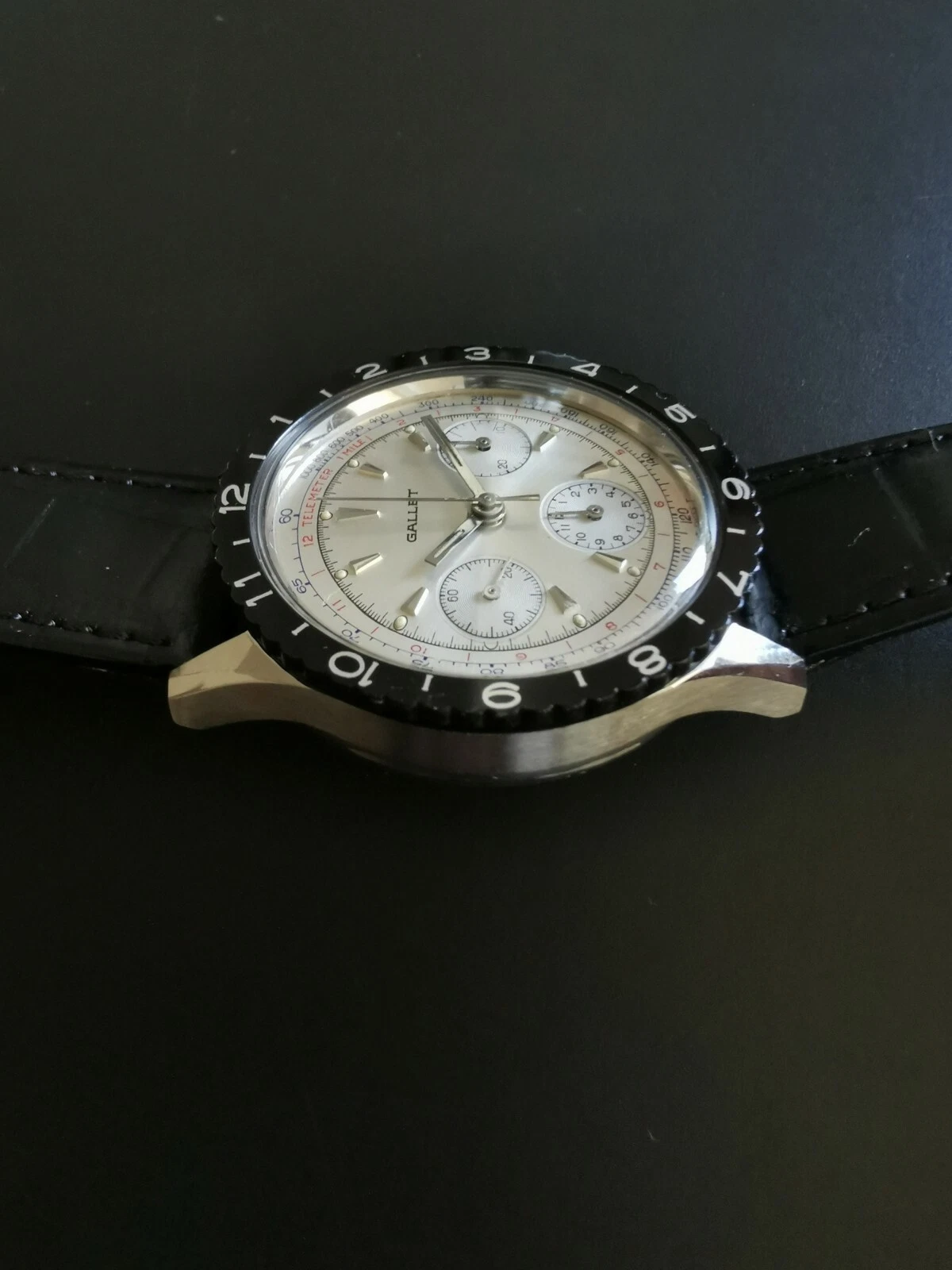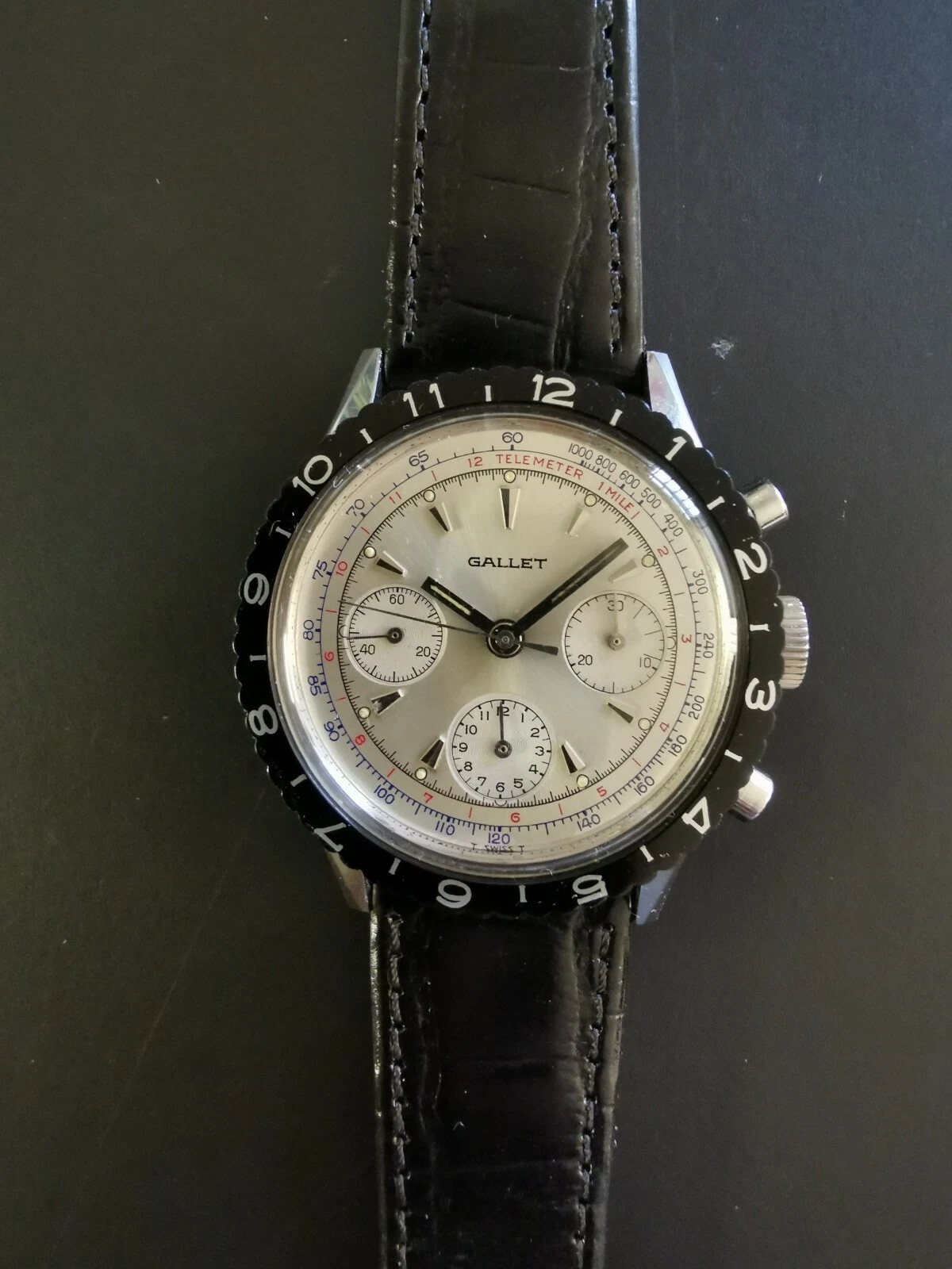 Vintage Gallet MultiChron Pilot Chronograph Stainless Steel Valjoux 72