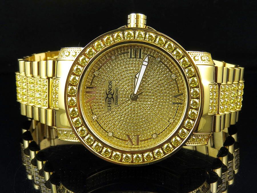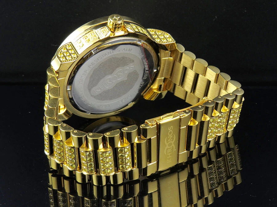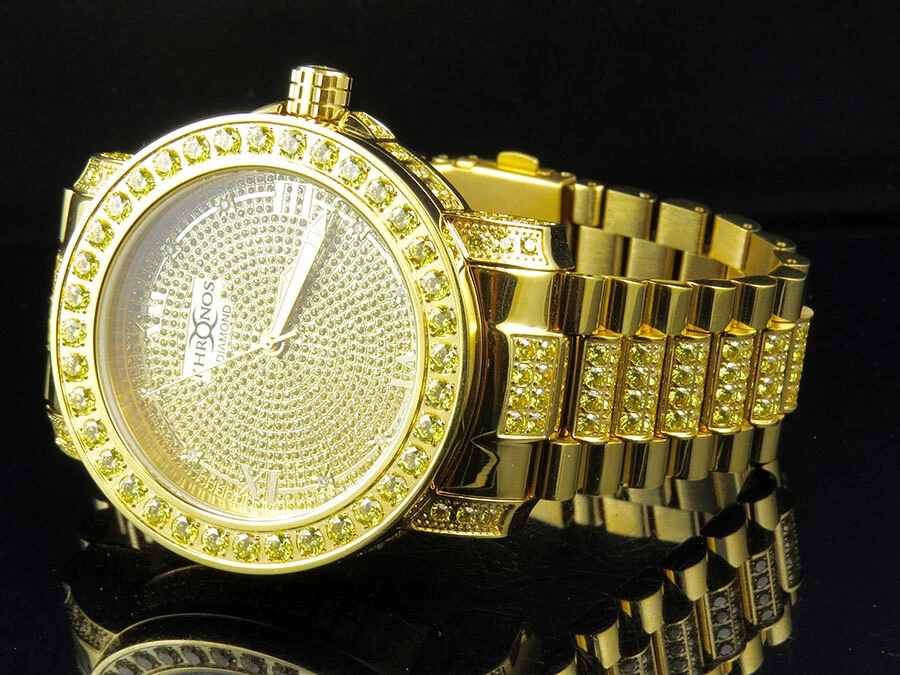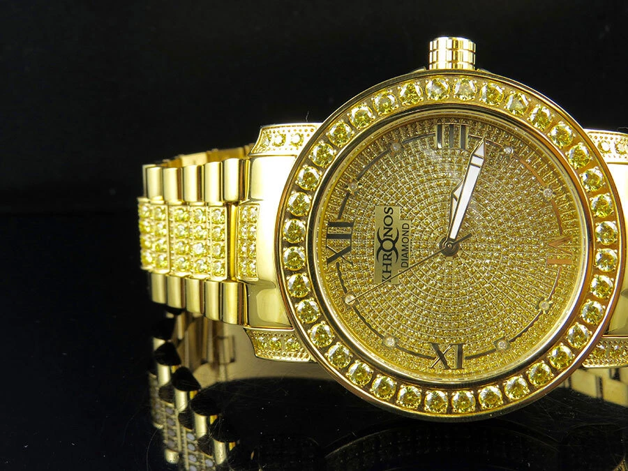 Men's Yellow Gold Finish Stainless Steel Khronos Simulated Canary Diamond Watch