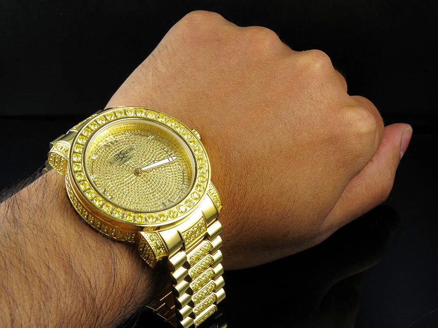 Men's Yellow Gold Finish Stainless Steel  Khronos Simulated Canary Diamond Watch