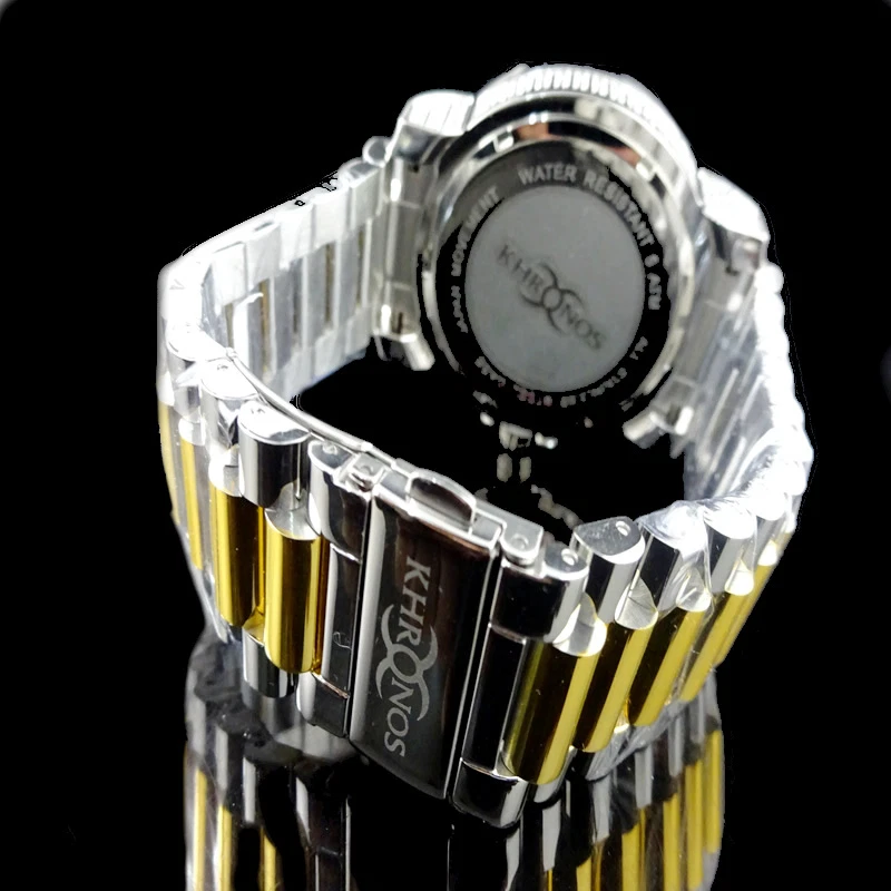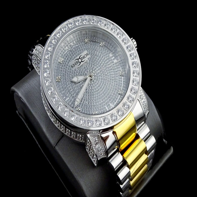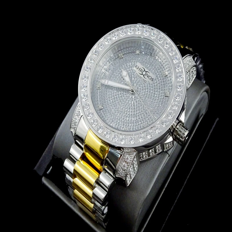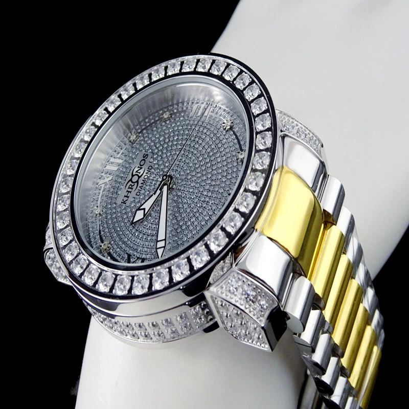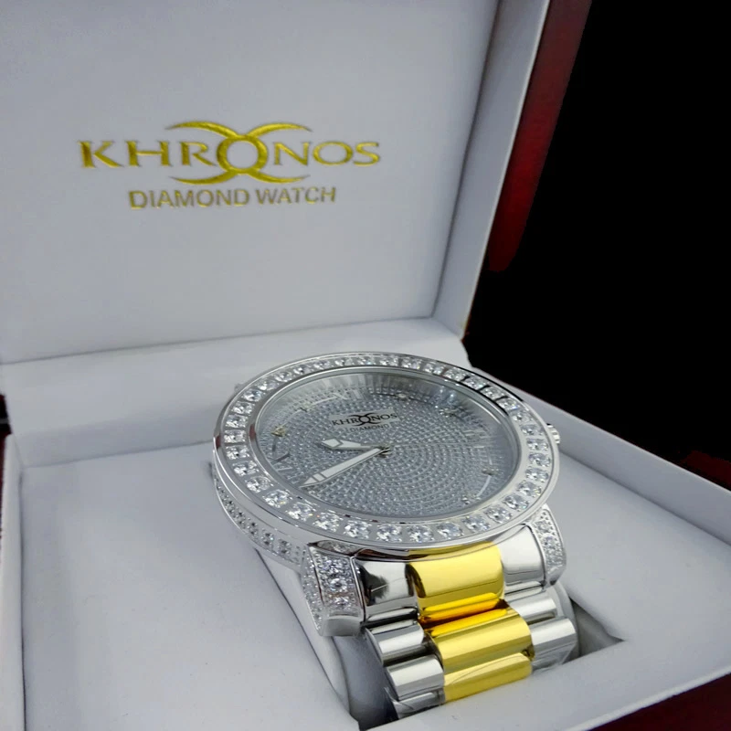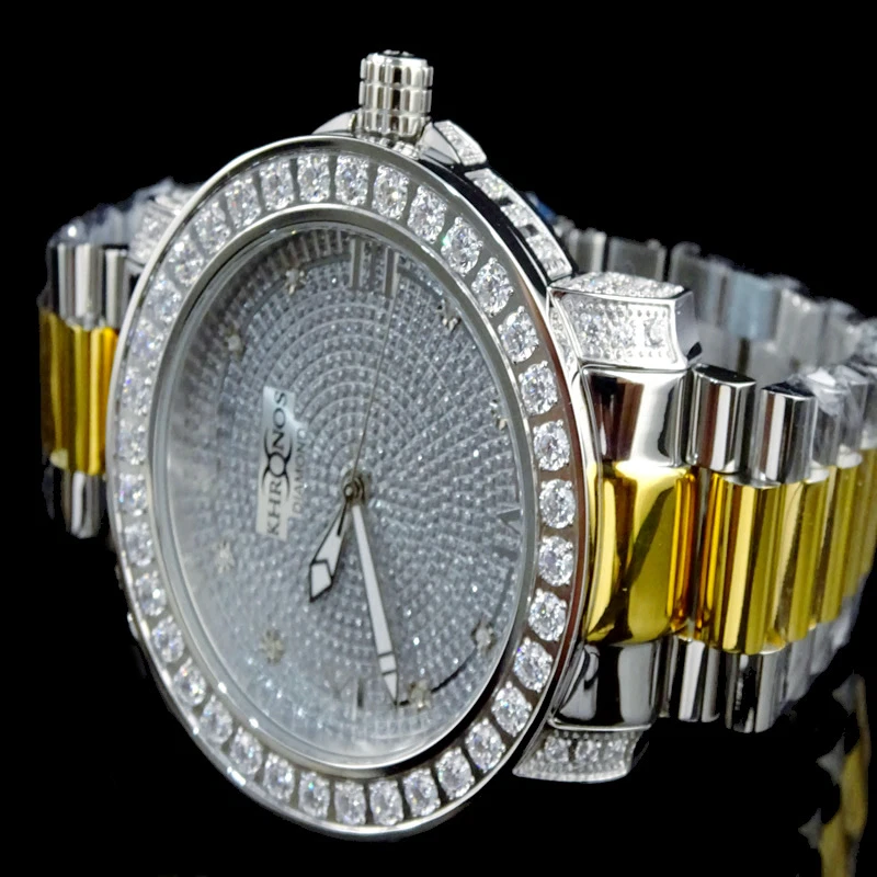 Mens 2 Tone Custom Khronos Diamond Gold Finish Full Stainless Steel Band Watch
