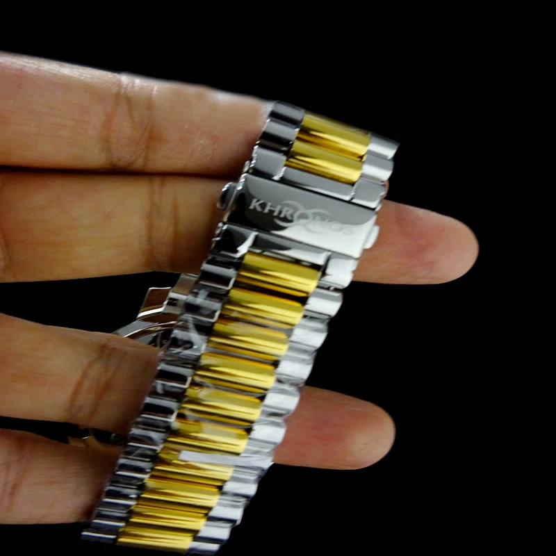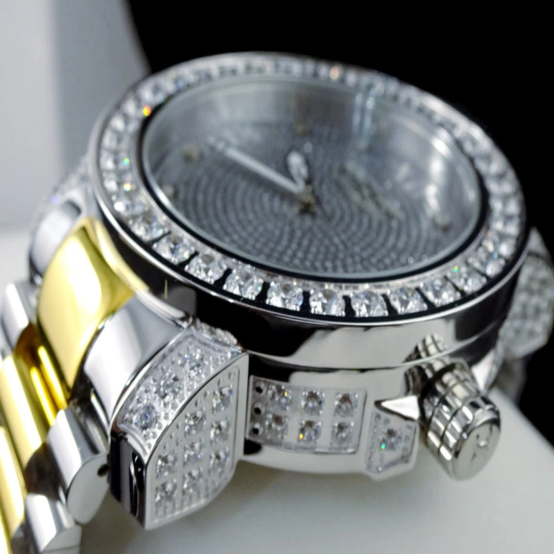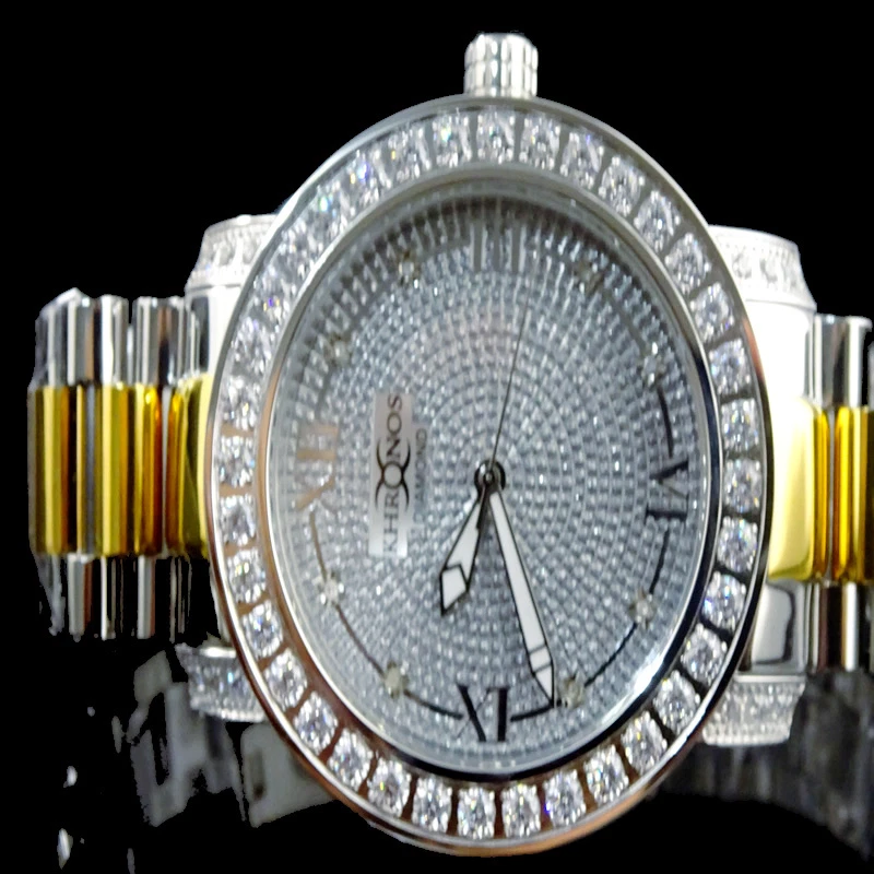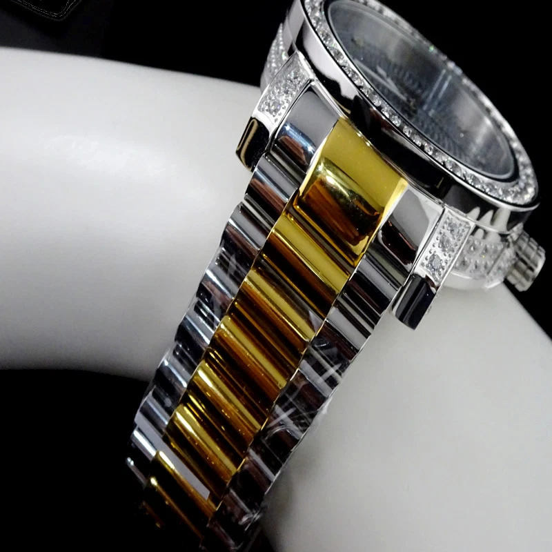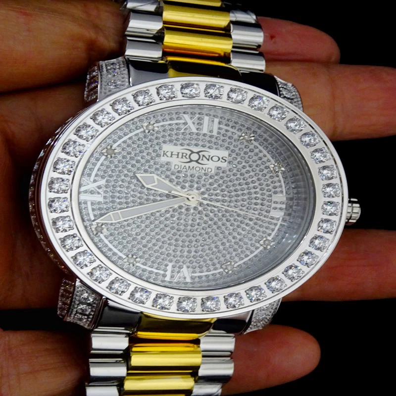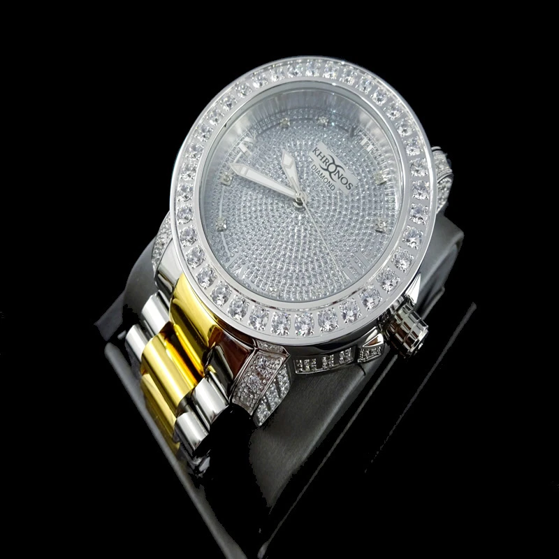 Mens 2 Tone Custom Khronos Diamond Gold Finish Full Stainless Steel Band Watch