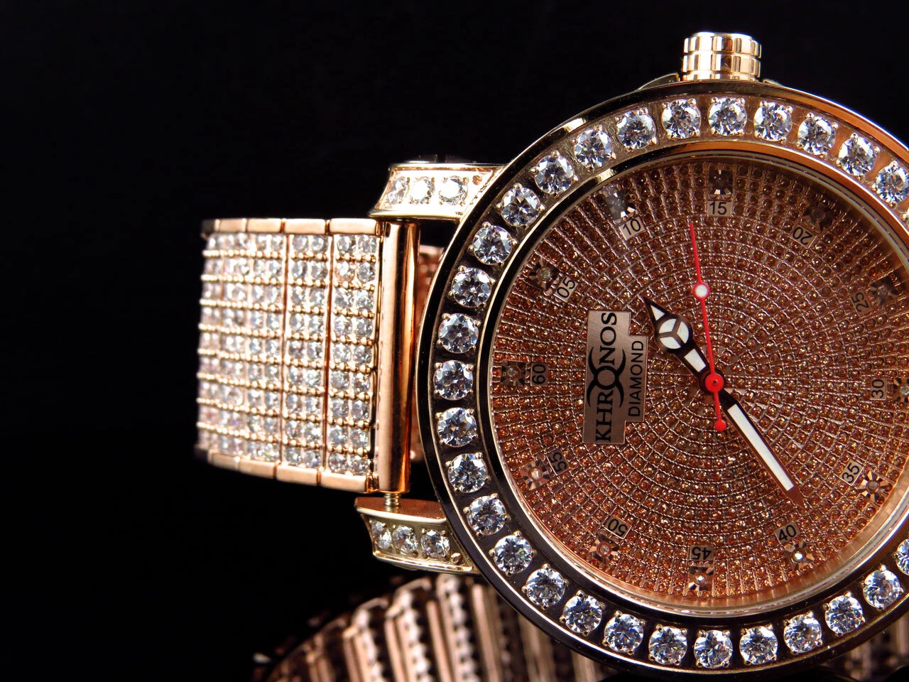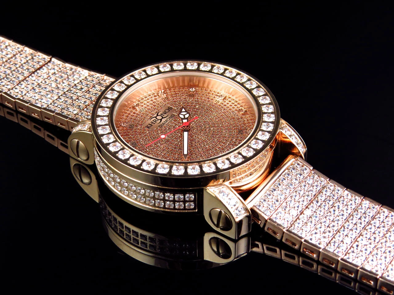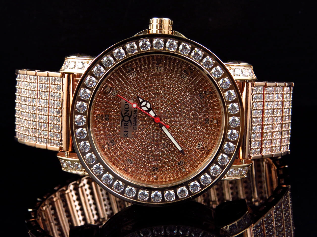 Mens Rose Gold Over Steel Khronos/Joe Rodeo Custom Bezel And Band Diaomond Watch