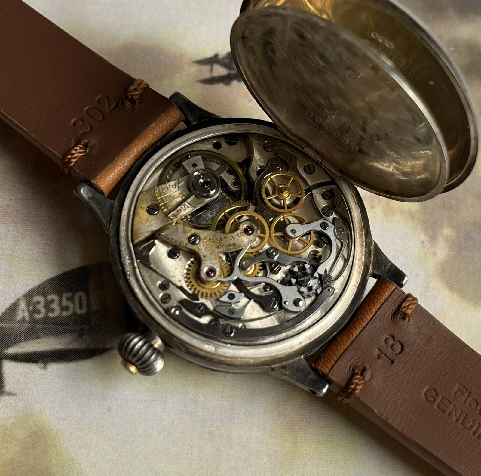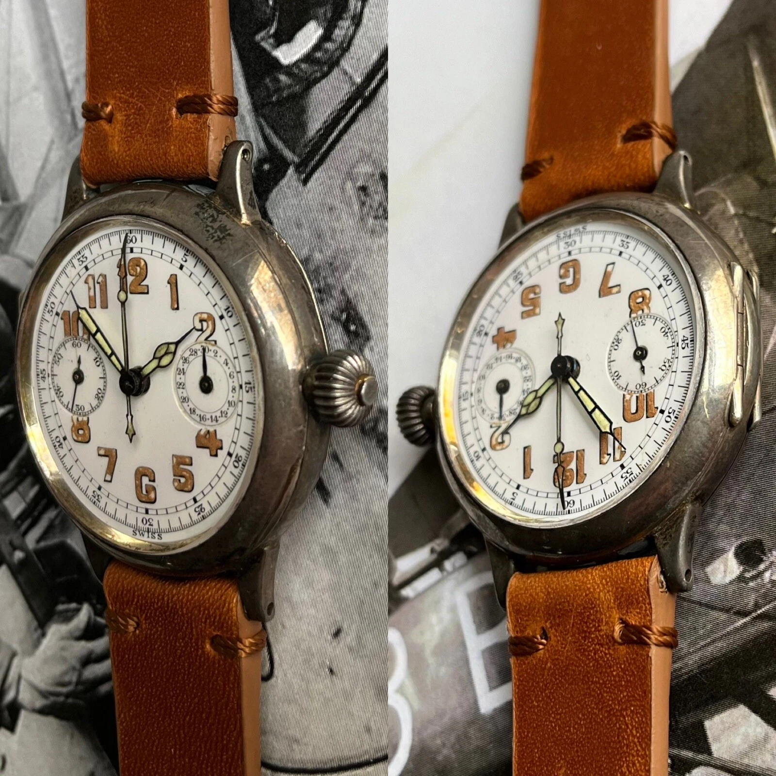 Rare Vintage WW1 Military Gallet Multi-Chron Chronograph Silver Watch