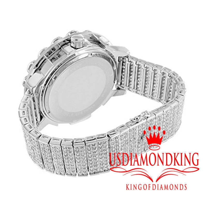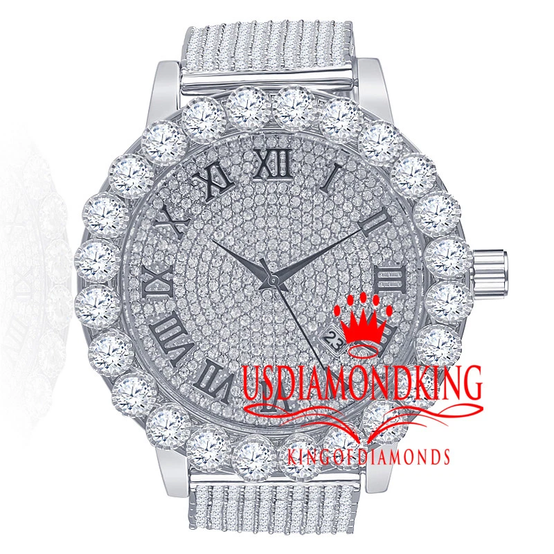 Roman Face Mens Solitaire Steel White Gold Tone Custom Band Lab Diamond Watch