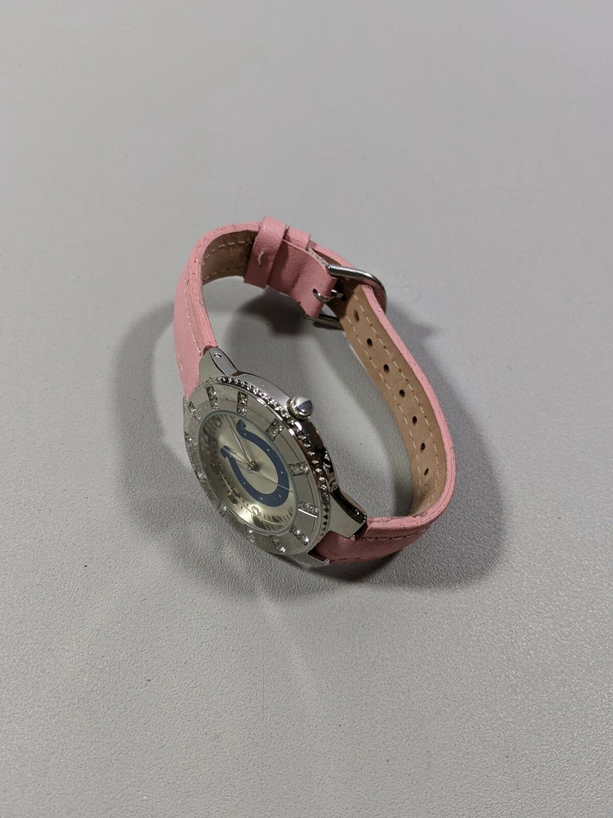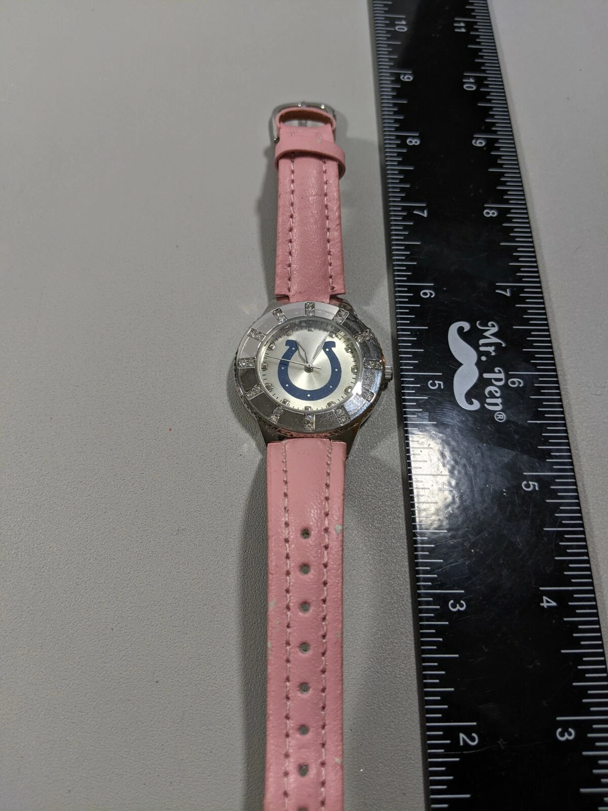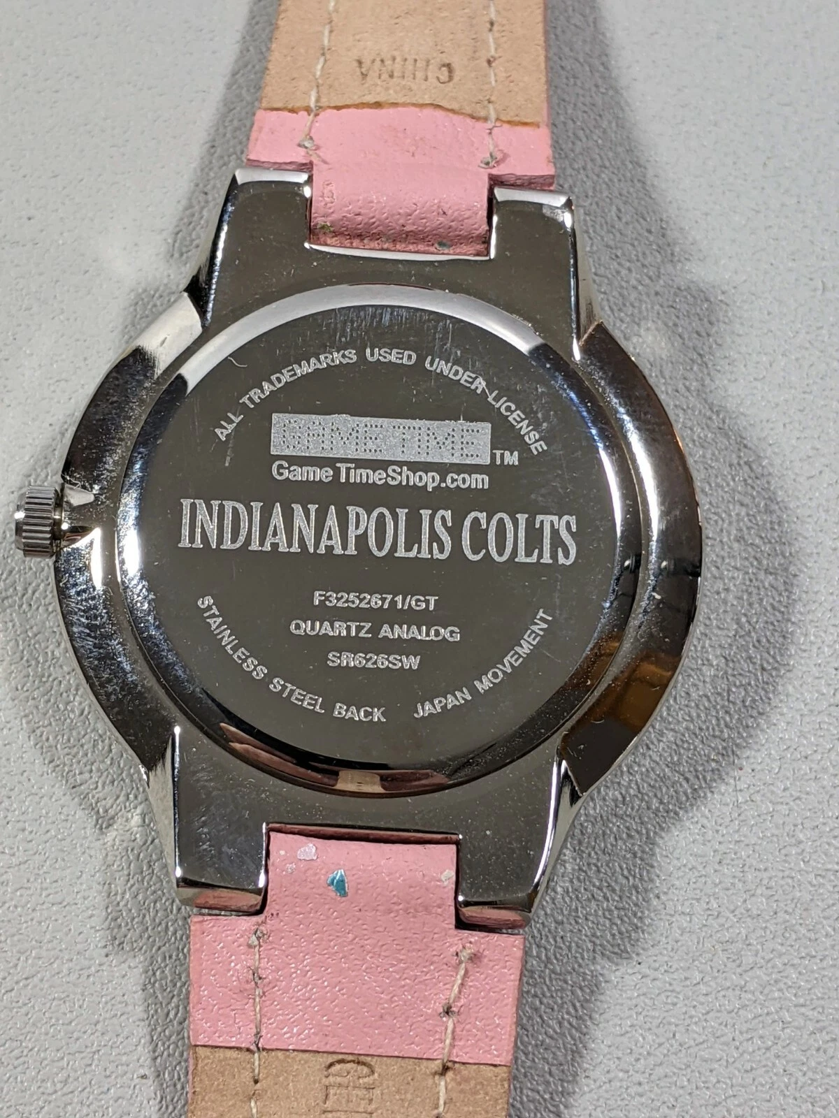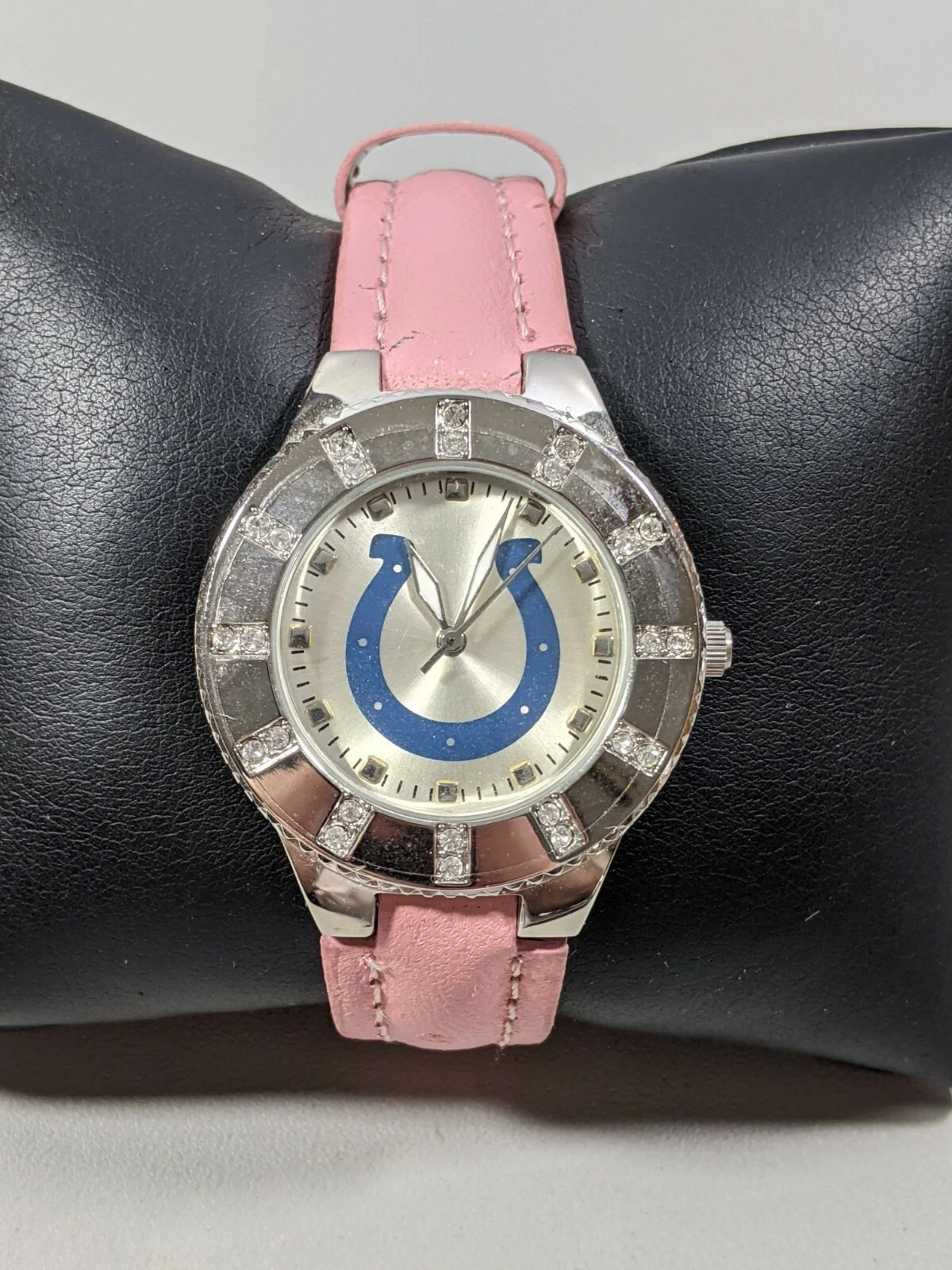 Indianapolis Colts Silver Tone Round Case 36.5 mm Pink Leather Band Watch 8 Inch