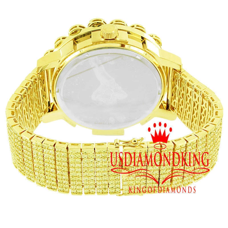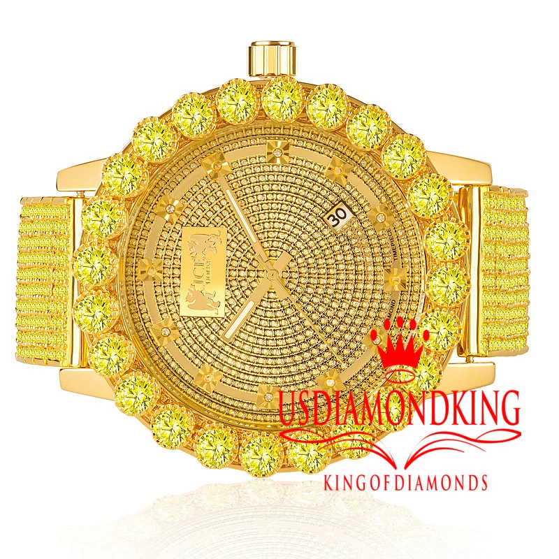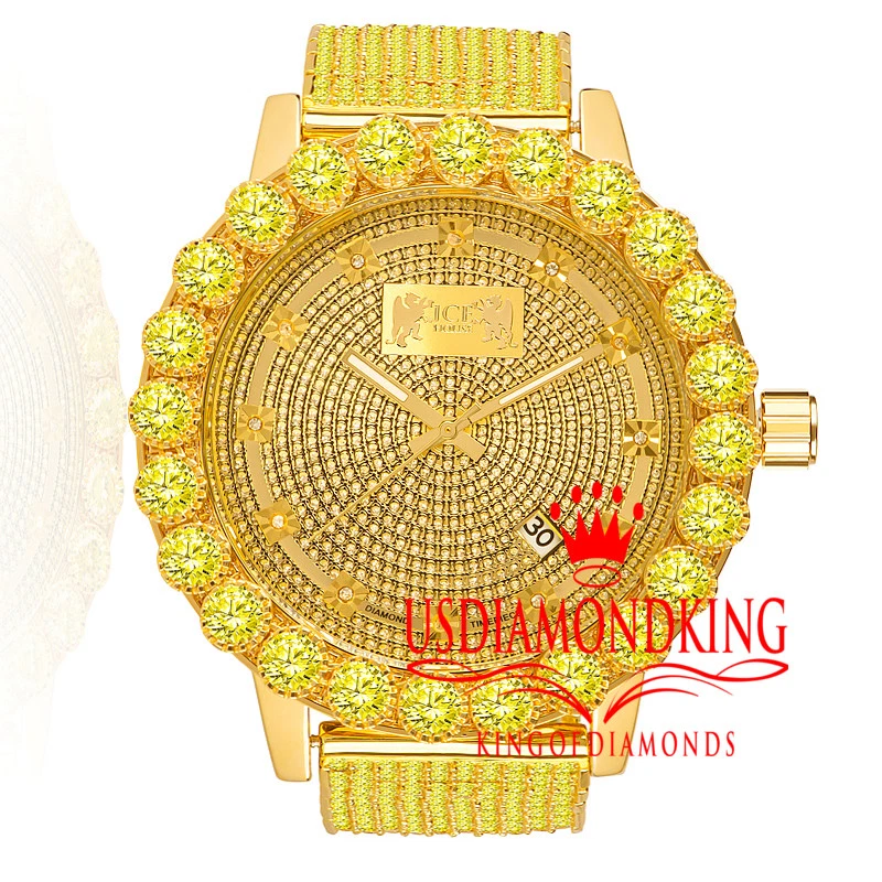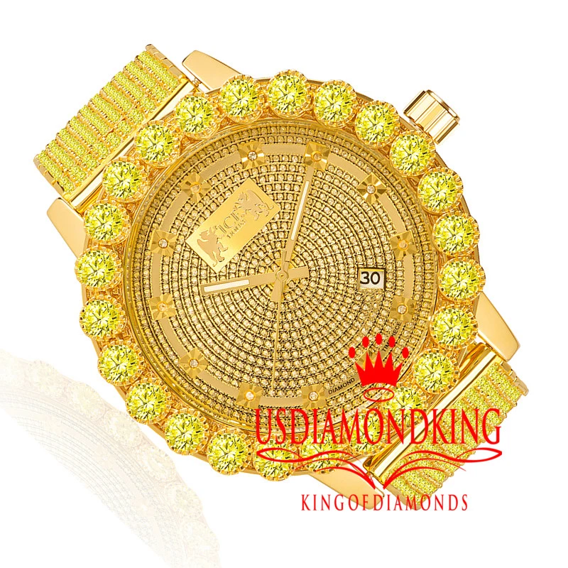 Canary Real Diamonds Mens Stainless Steel Gold Tone Custom Band Watch Solitaire