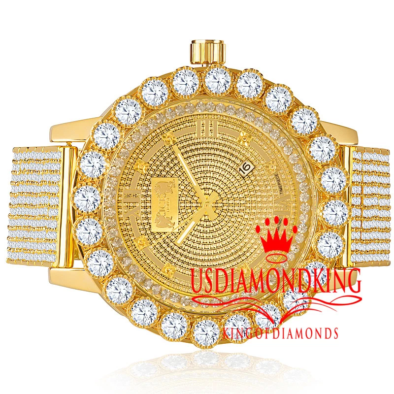 Mens Real Diamond Roman Face Yellow Gold Tone 10 Row Custom Band Watch