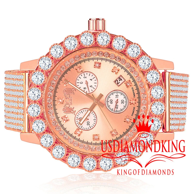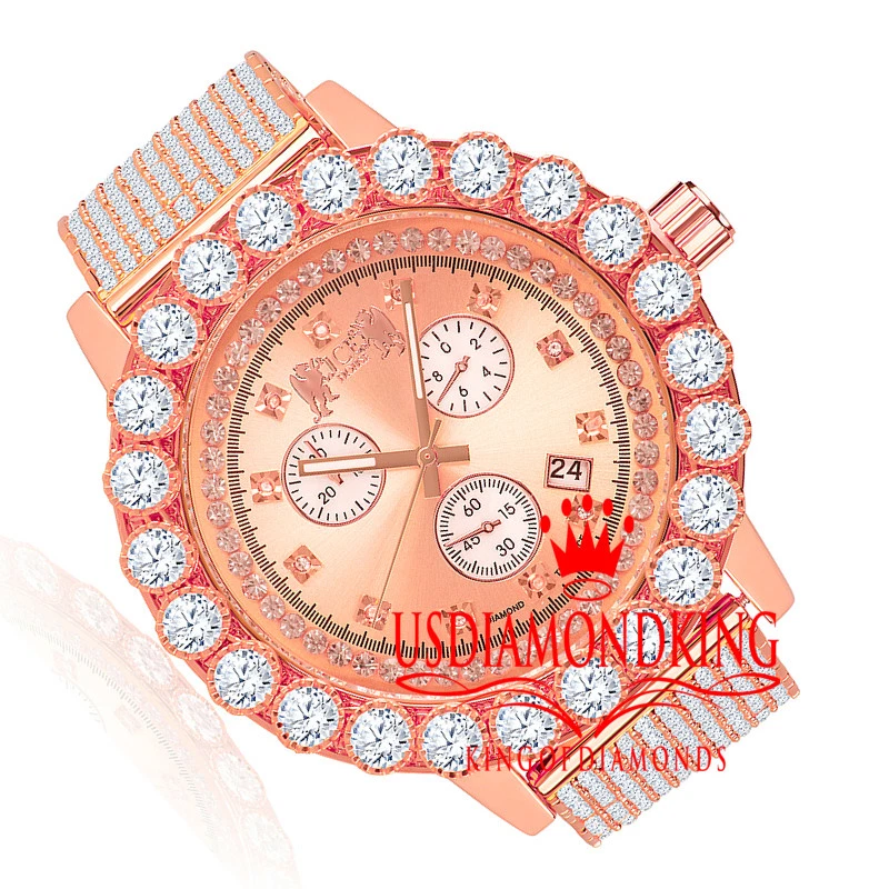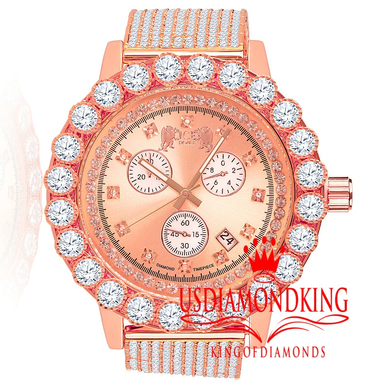 Mens Rose Gold Tone Watch Solitaire Full Custom Diamond Steel Bling New