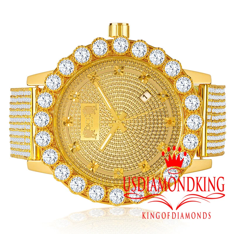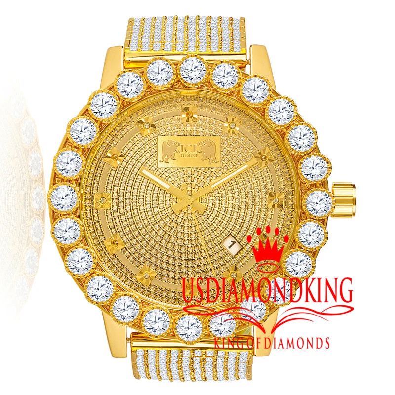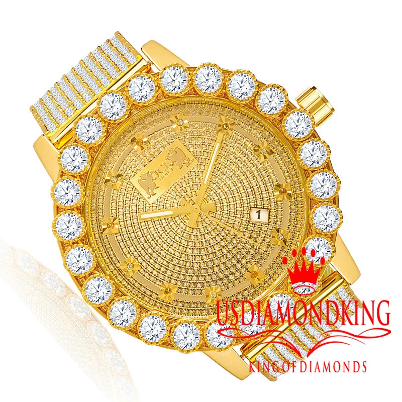 Real Genuine Diamonds Mens Stainless Steel Gold Tone Chronograph Watch Solitaire