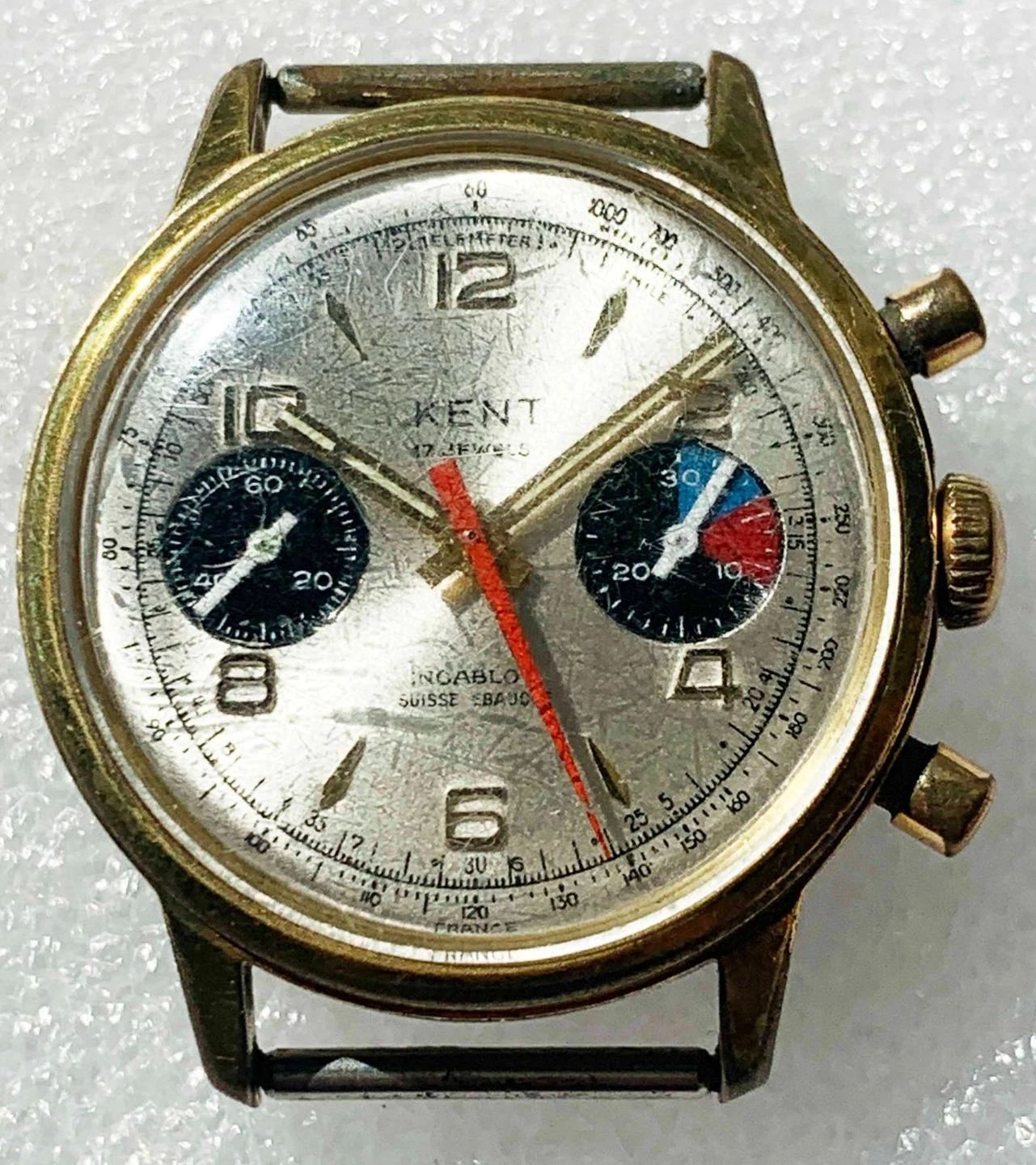 VINTAGE KENT REGATTA CHRONOGRAPH 17J VALJOUX 7733 YELLOW GF CASE 4 RESTORATION