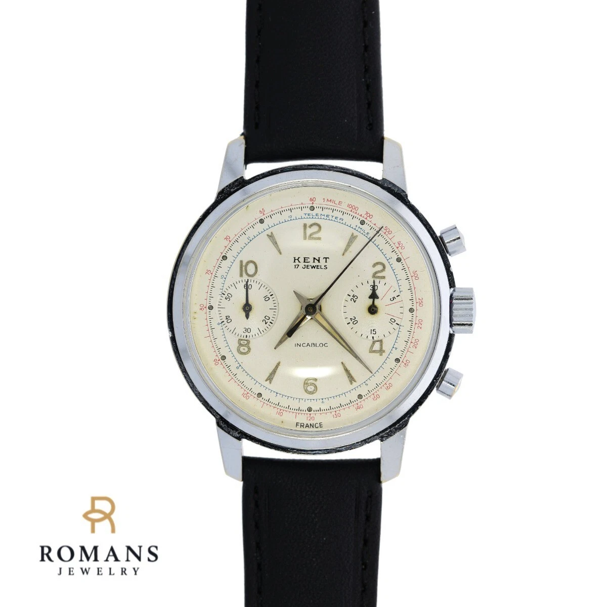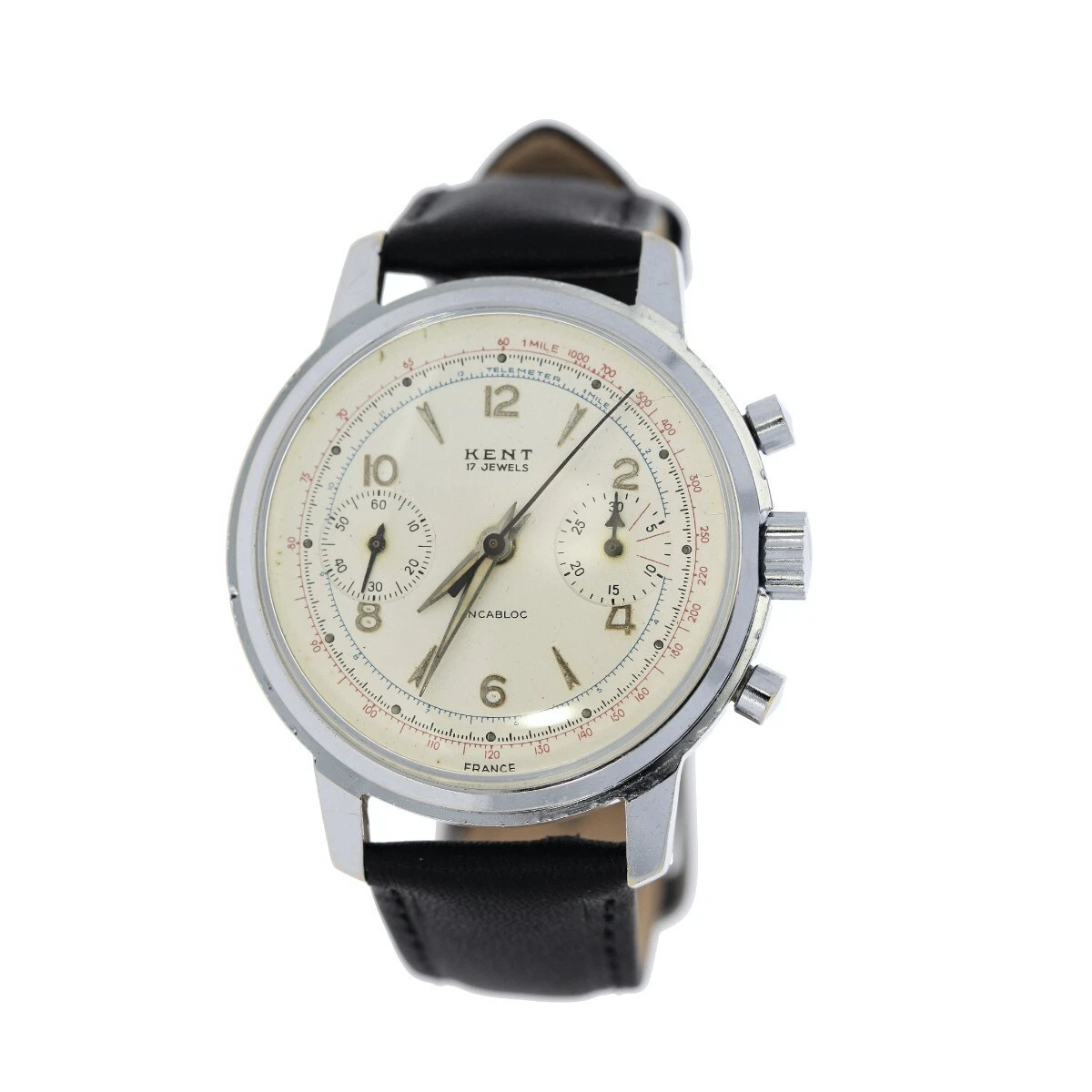 Kent Incabloc Winton Watch Co. Steel Chronograph Watch Serviced Warranty