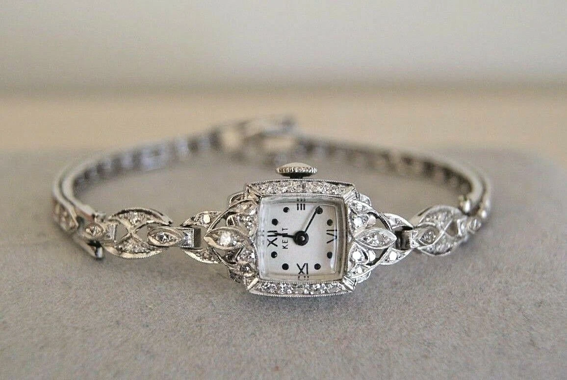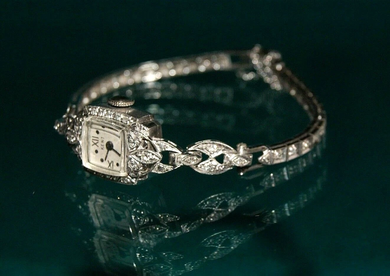 Stunning Vintage Platinum Gold and Diamonds Kent Women's Watch .58 ct. Diamonds