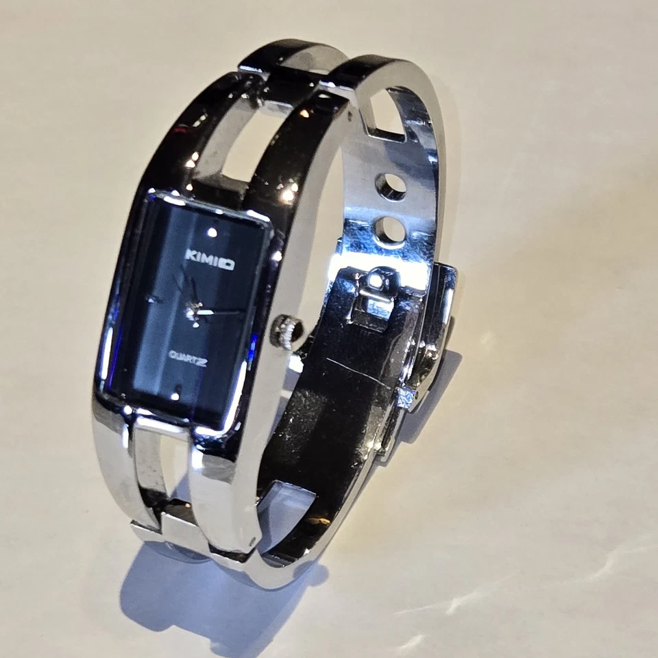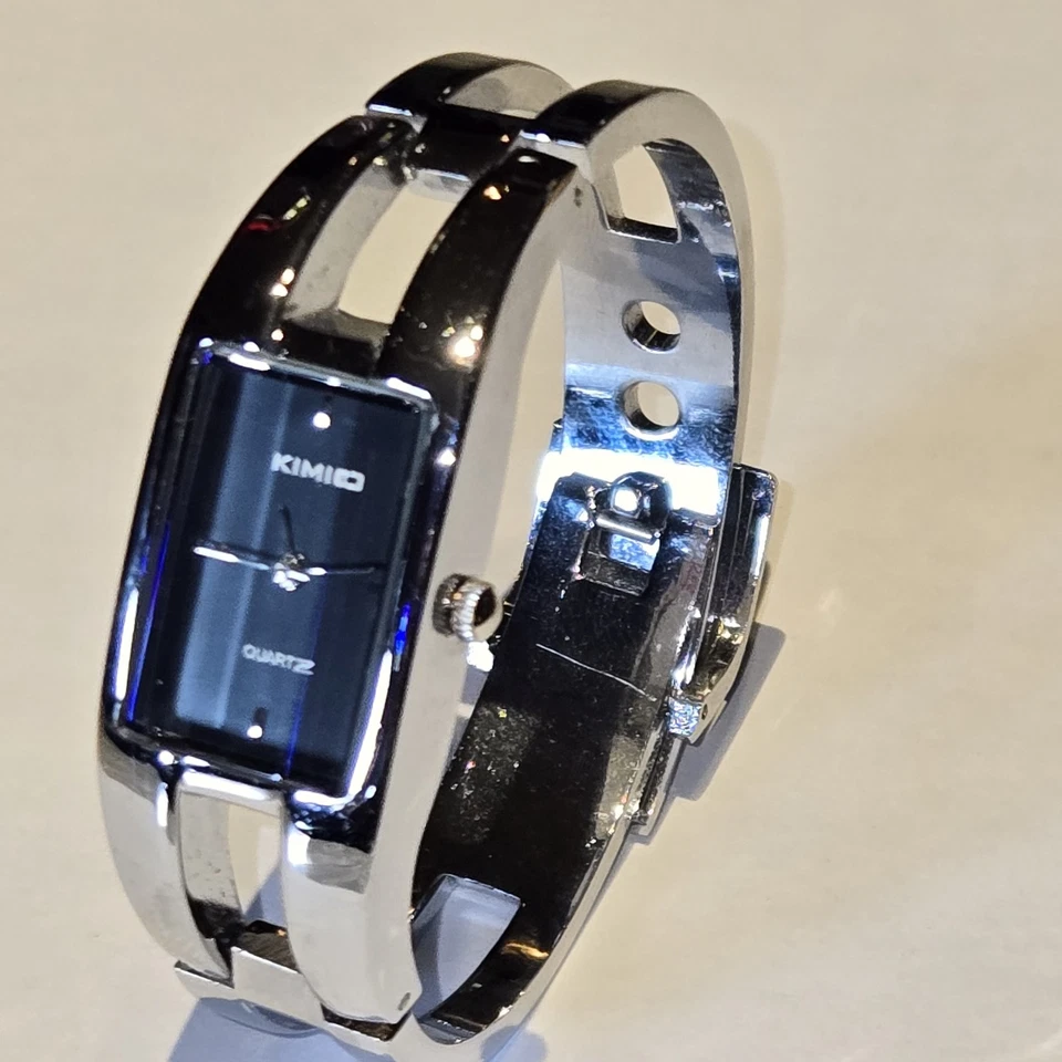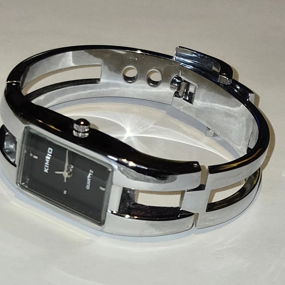 New Old Stock KIMIO Rectangle Face Stainless Steel Bangle Bracelet Women's Watch