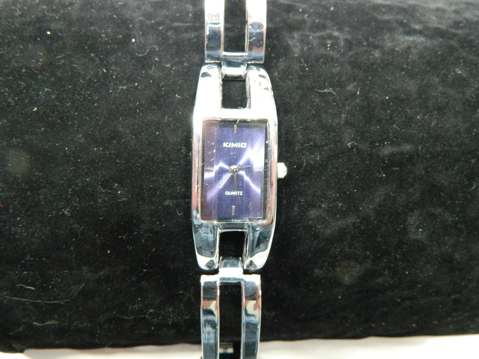 KIMIO silver tone purplish blue dial face lady's/Woman's watch/wristwatch