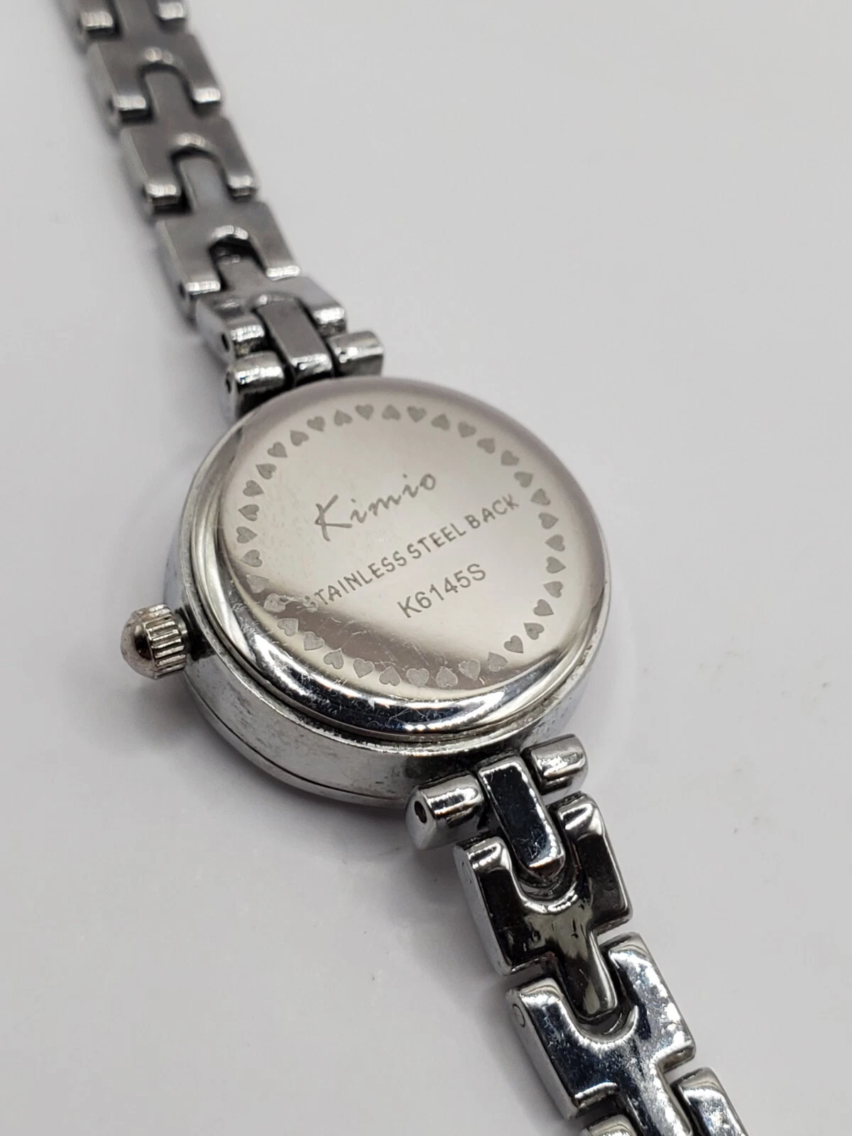 Kimio Ladies Quartz Watch 23mm Round Silver Tone Dainty Metal Link Band