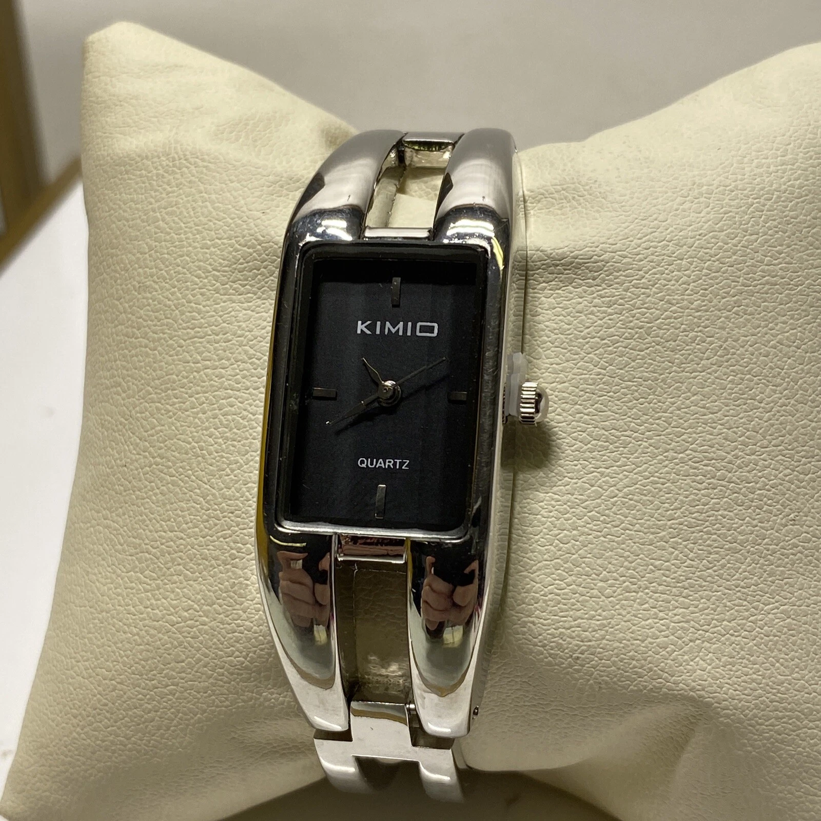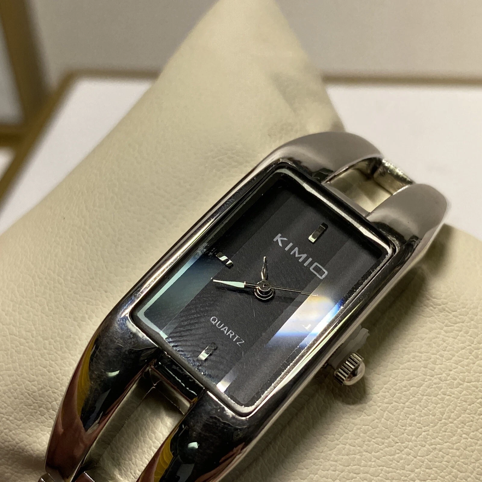 Kimio Black Dial Raised Dial Silver Tone Rectangle Case Bracelet Band Watch