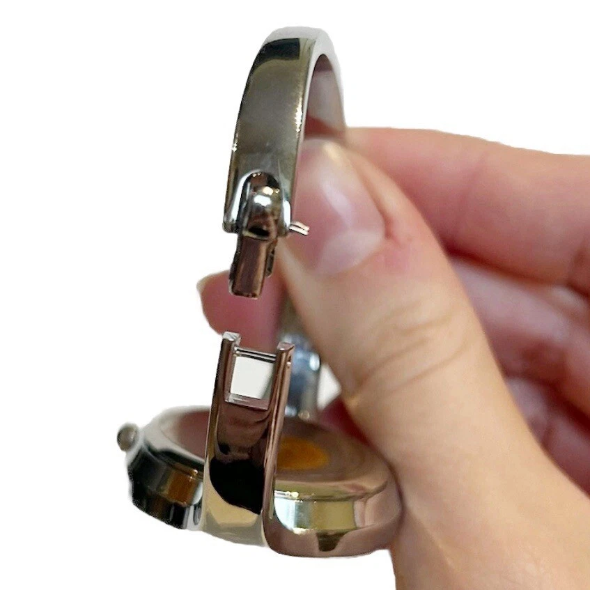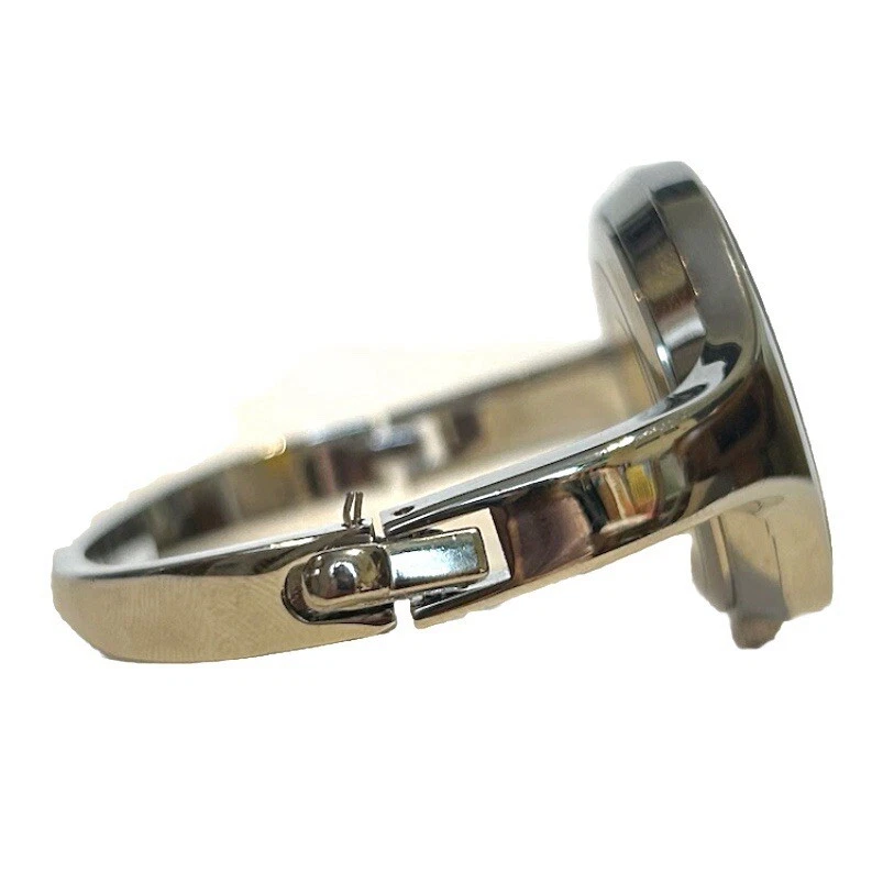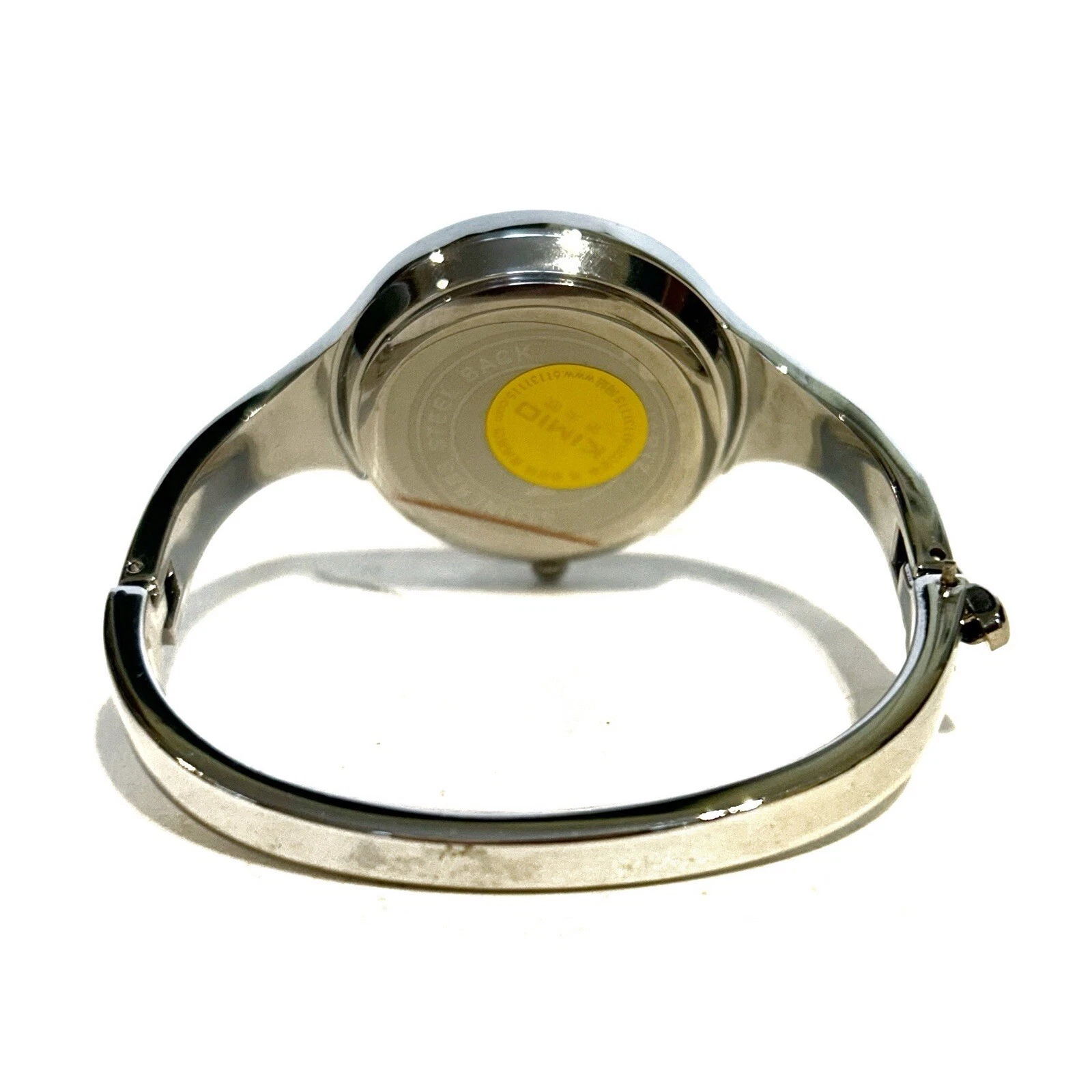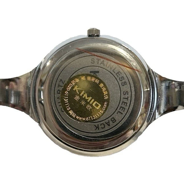 Kimio Quartz Silver Tone Metal Bangle Watch Black Face Rhinestones Steel Back