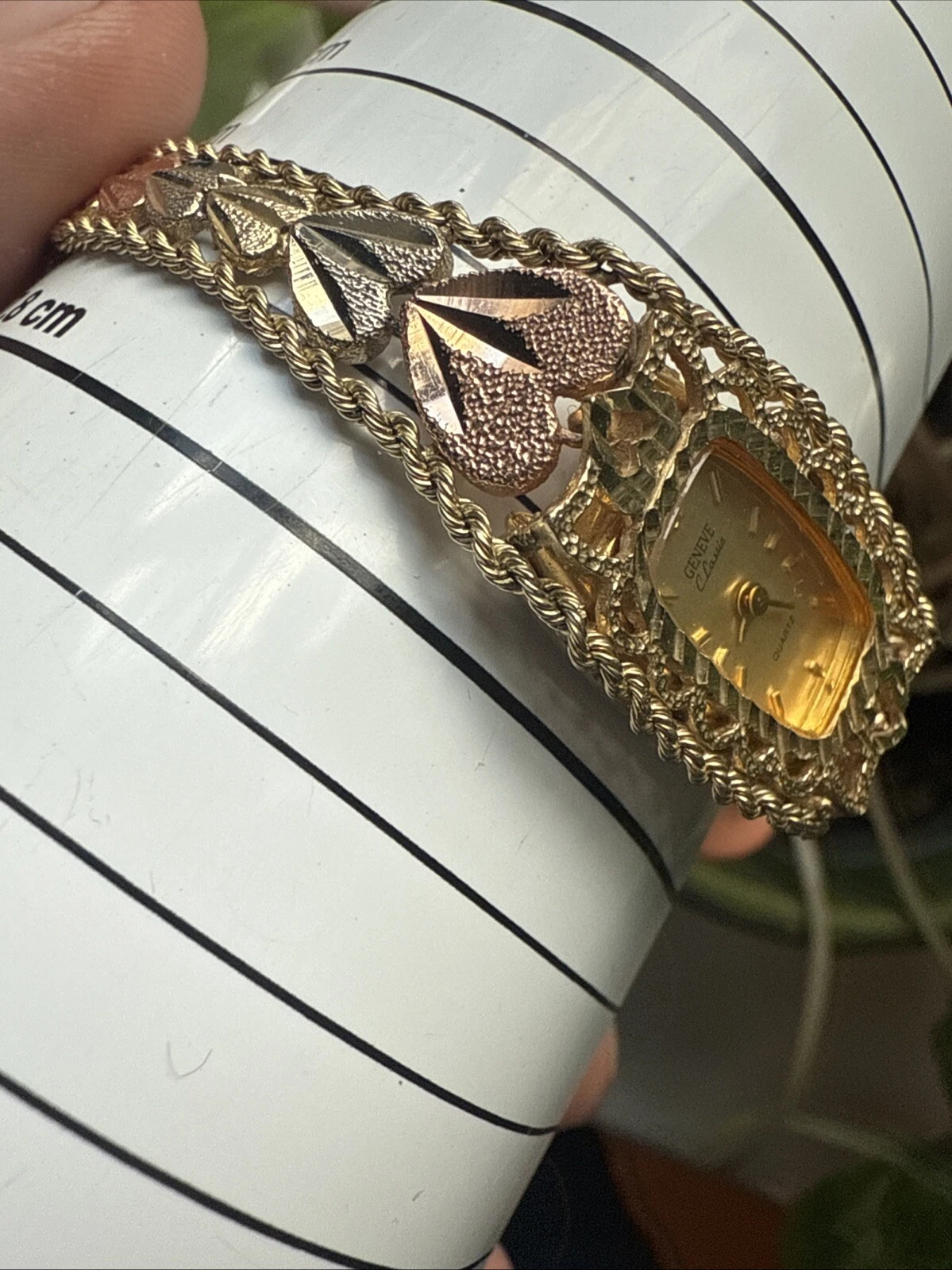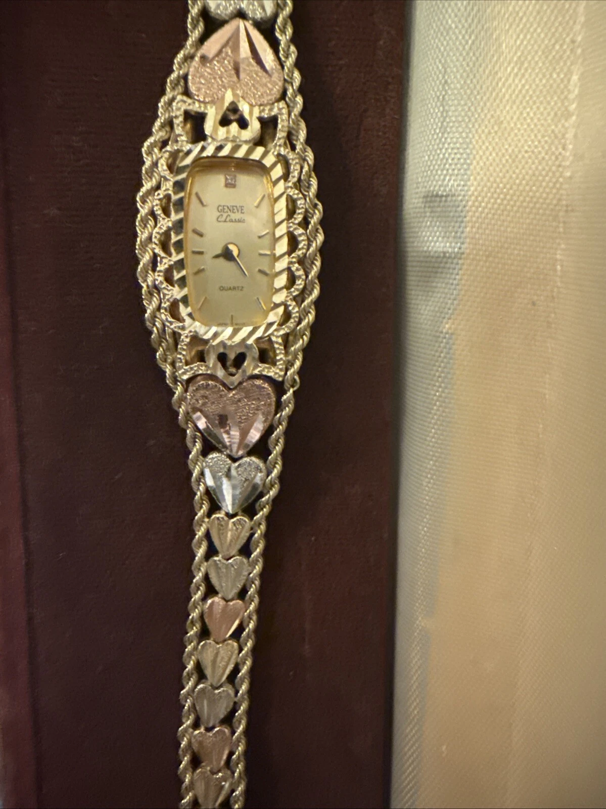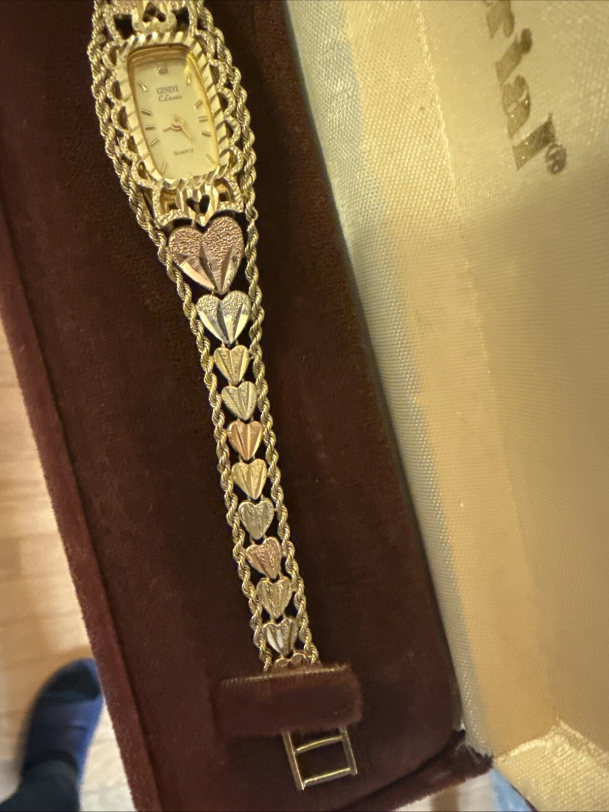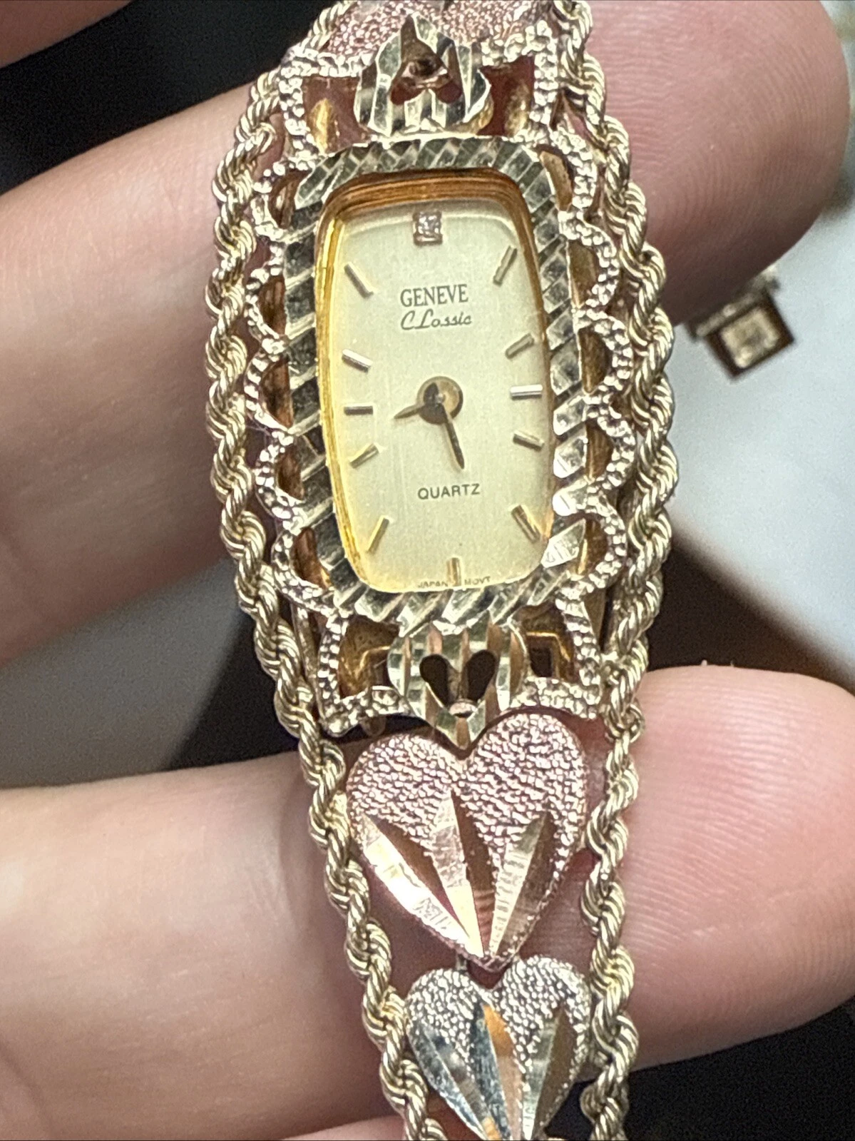 14K Gold Geneva Classic Ladies Watch Multi-color Hearts Valentine's Day