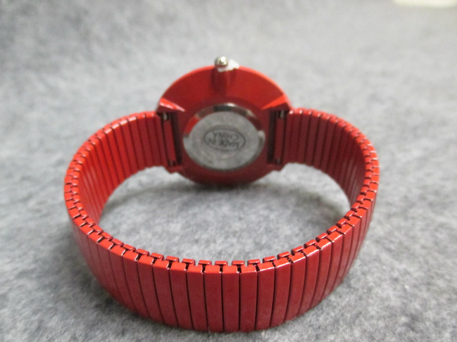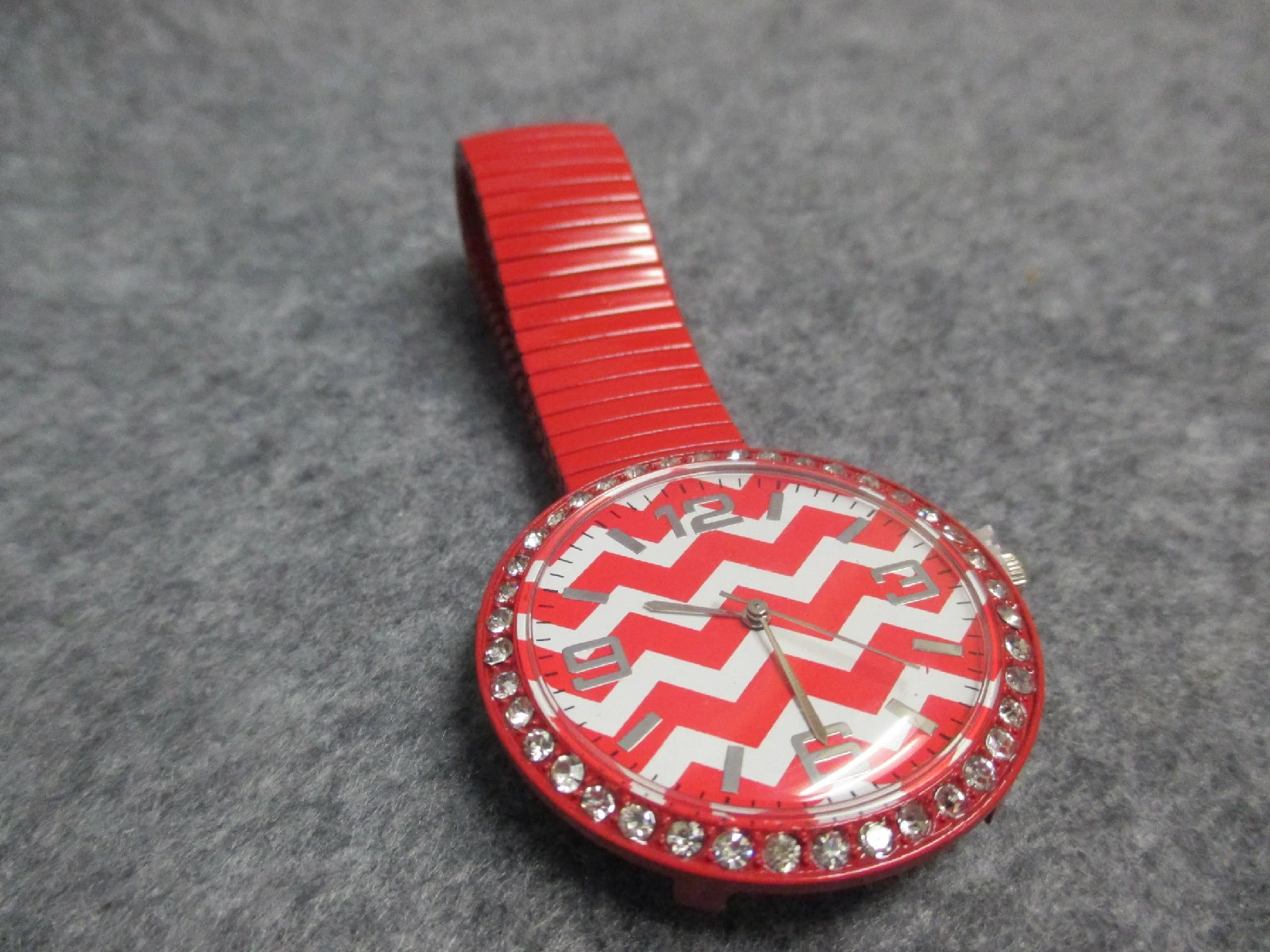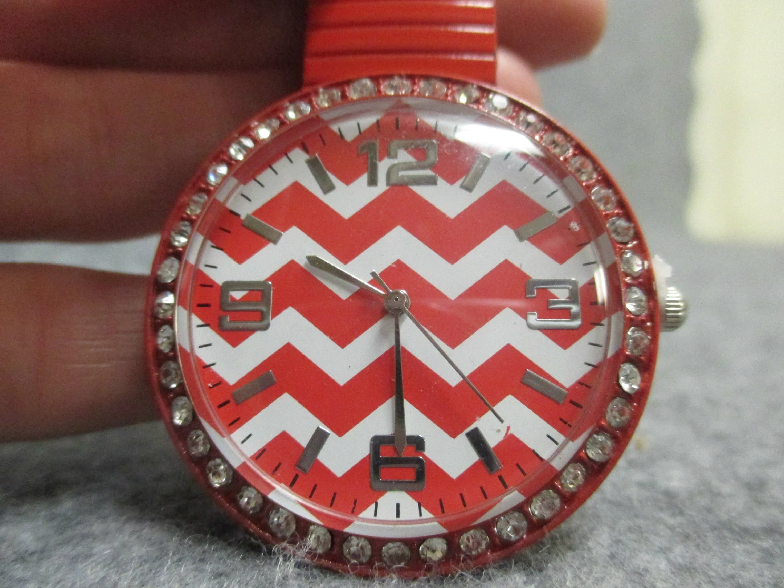 Geneva Chevron Print Wrist Watch Red & White W/rhinestones Flex Band Quartz
