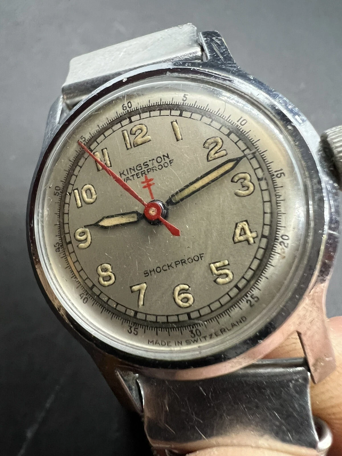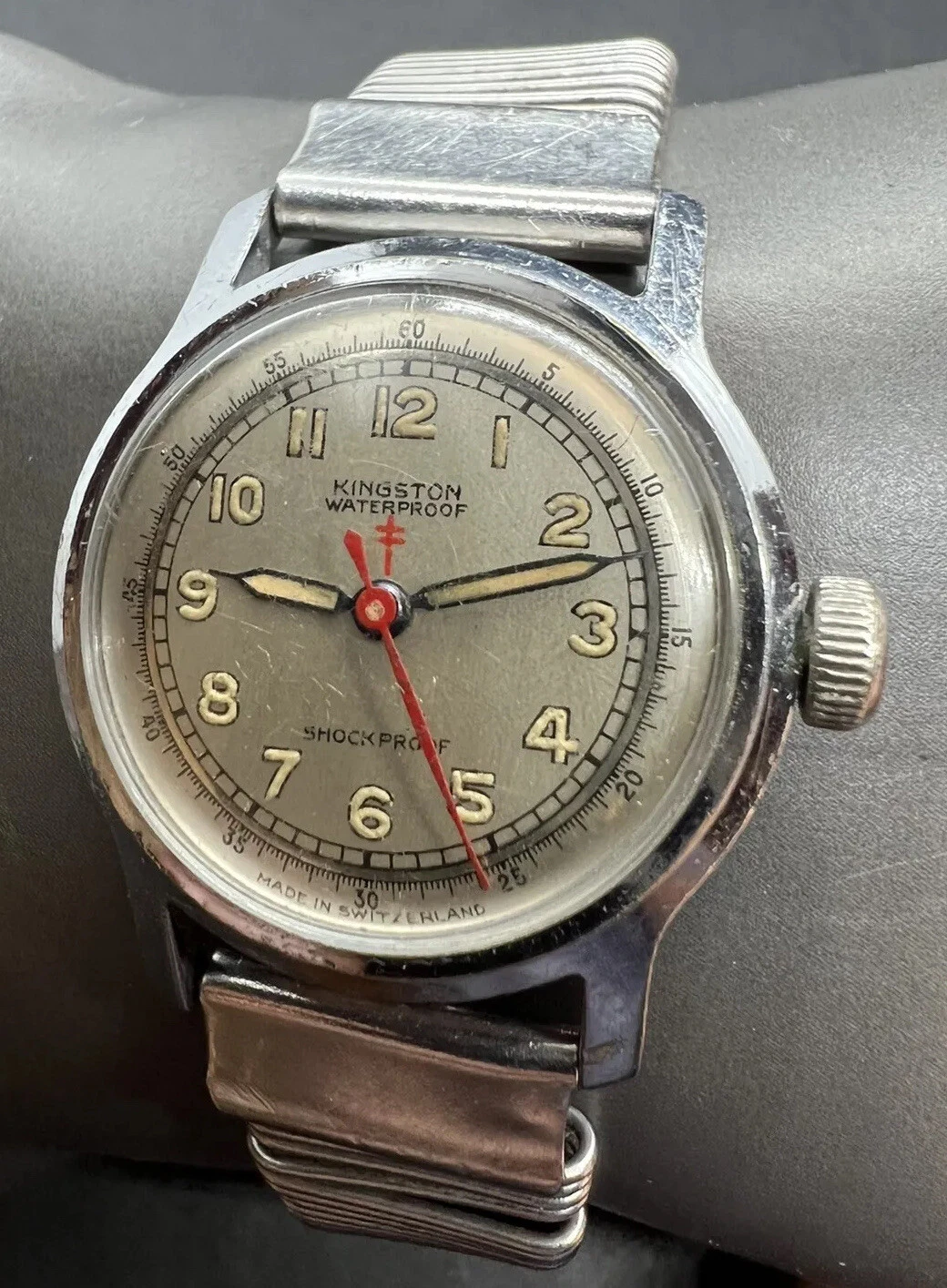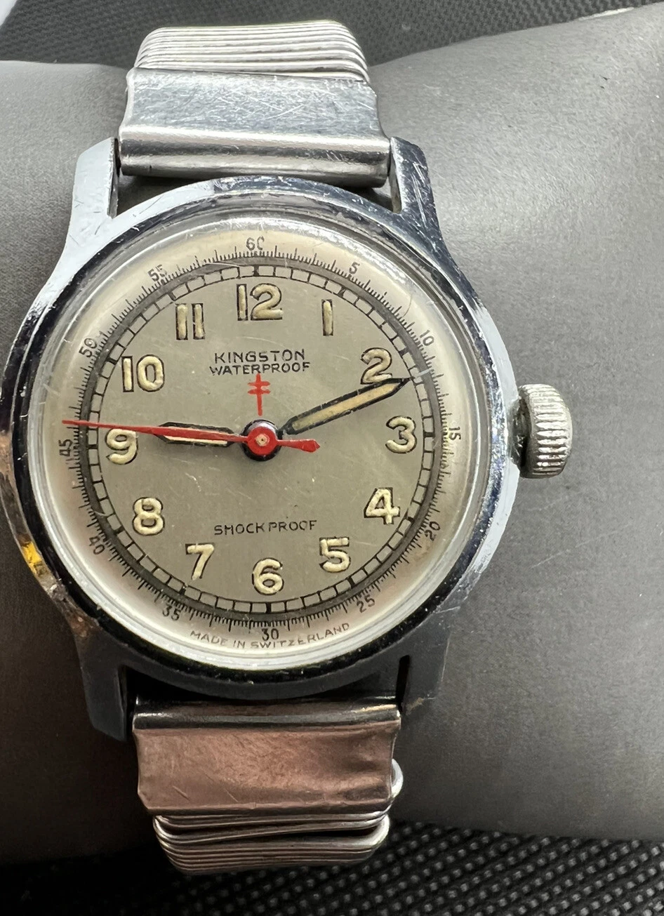 VINTAGE MEN'S KINGSTON Watch good condition military WWII Cross Of Lorraine