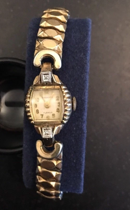 Kingston Ladies Watch 10k RGP Bezel Art Deco Crystal Speidel Band 17 Jewels Vtg