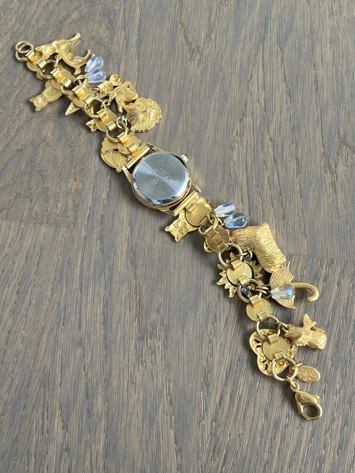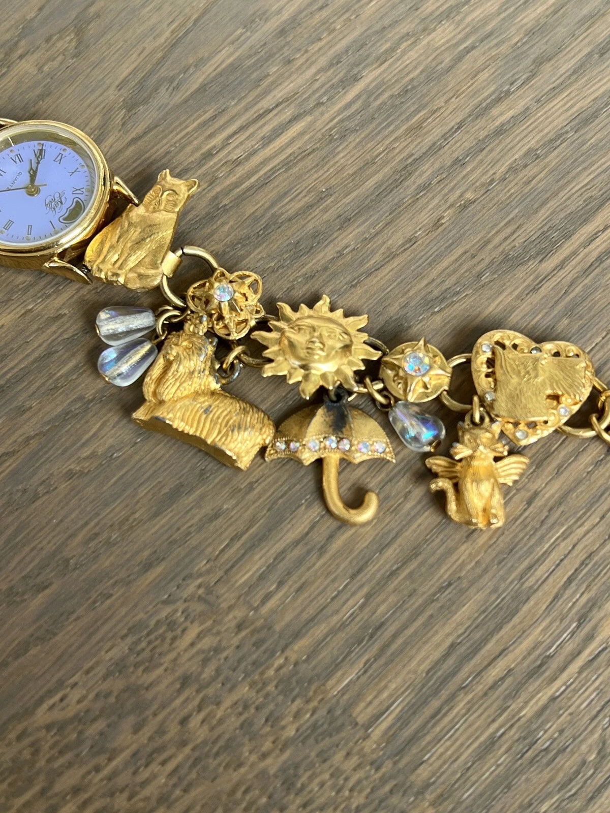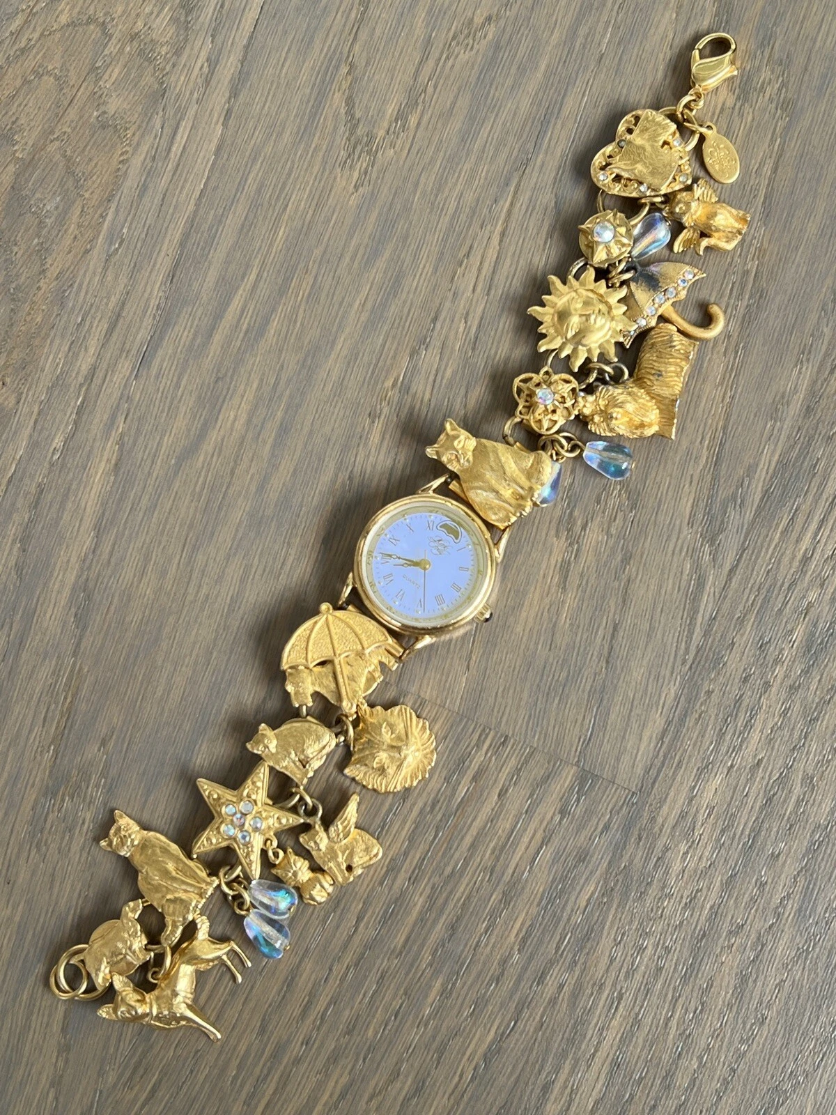 Vintage Kirks Folly Moon Phase Raining Cats &  Dogs Charm Bracelet Watch