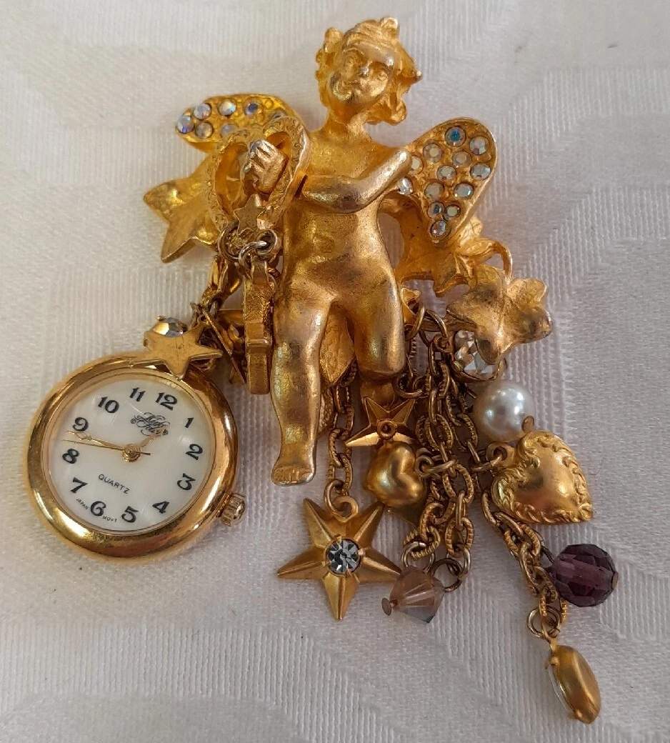 Vintage KIRK'S FOLLIES Cherub Charm and Watch Pin/Brooch