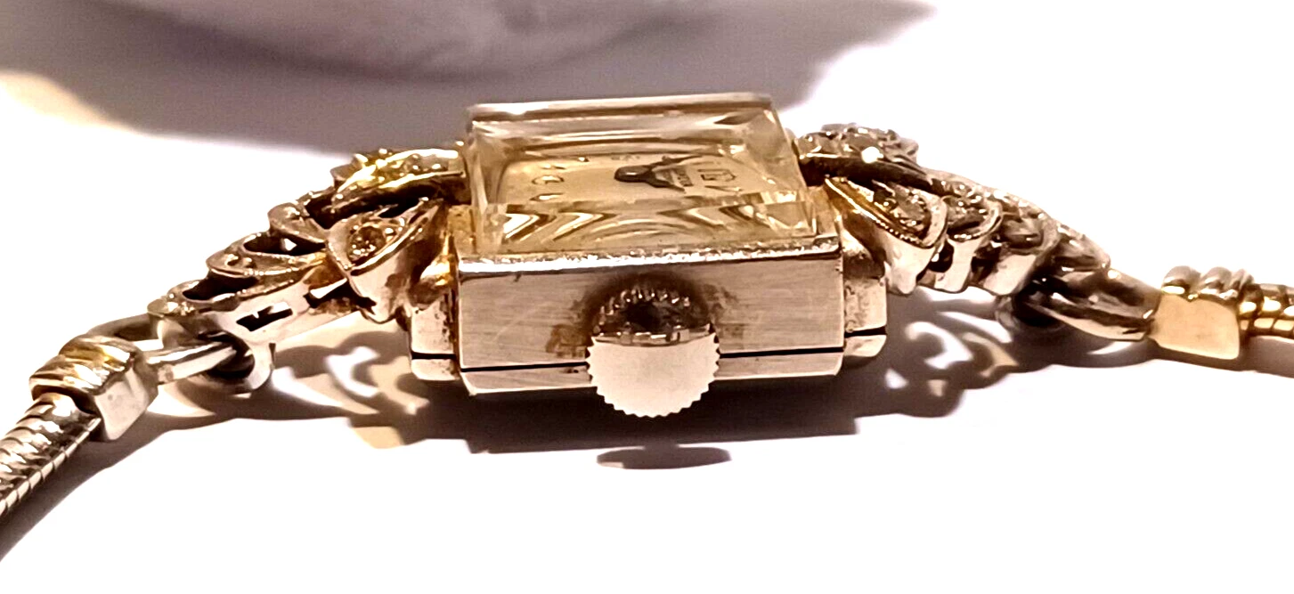 Antique Diamond Ladies Geneva 17J Manual Wind 14K White Gold Watch & Band