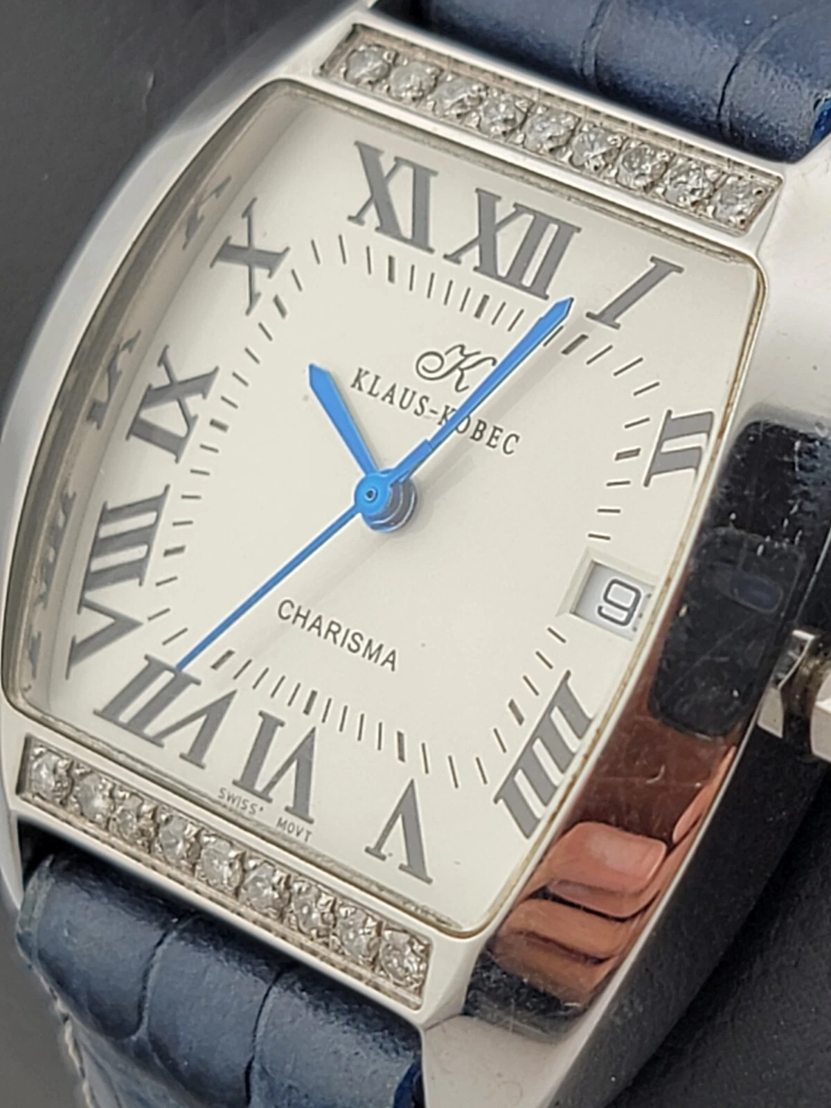 Klaus Kobec Charisma Stainless Steel Watch Unisex 18 Diamonds Sapphire Crystal.