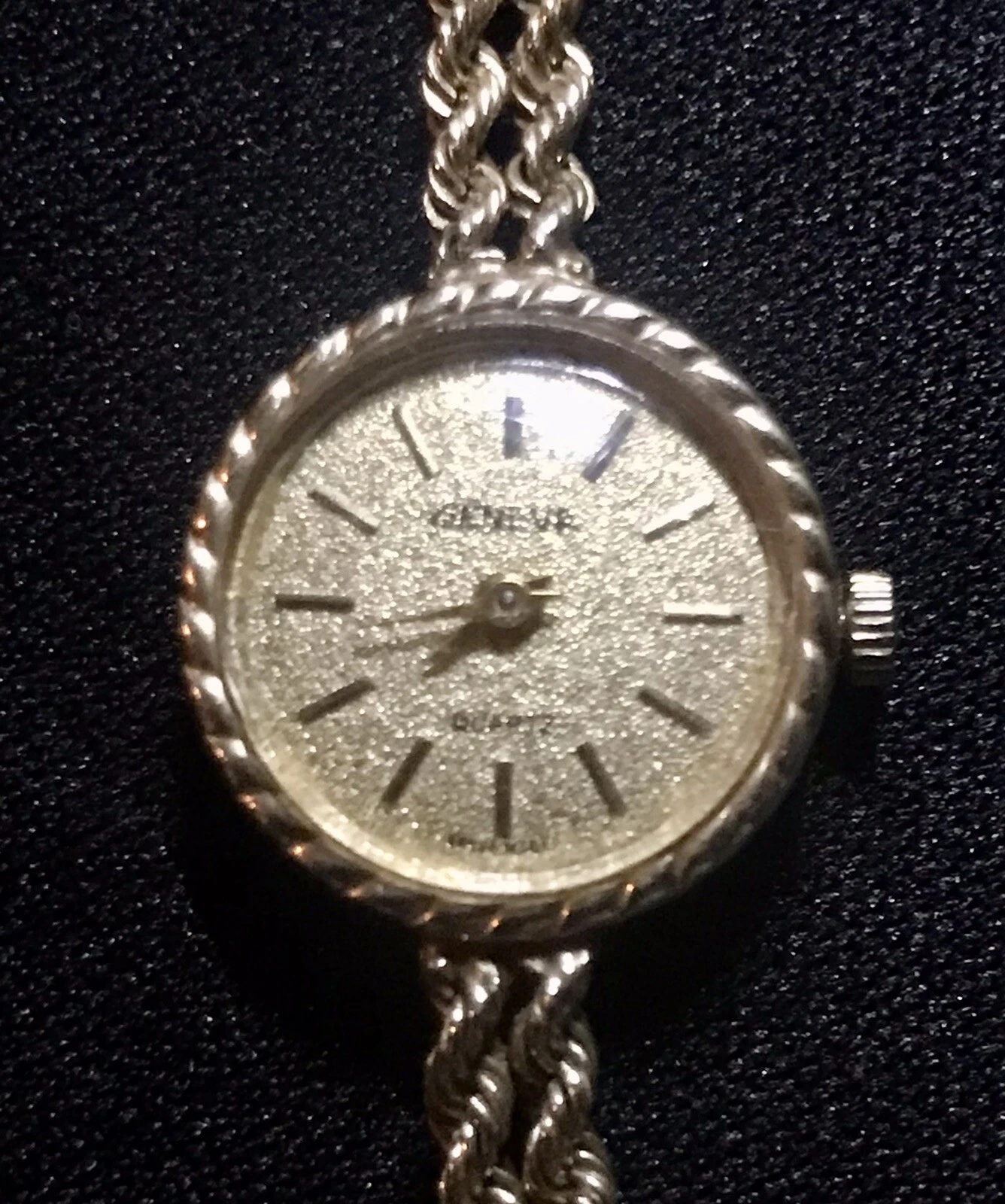 Geneva Swiss Made Quartz 14kt Gold Ladies Watch Double Rope Bracelet