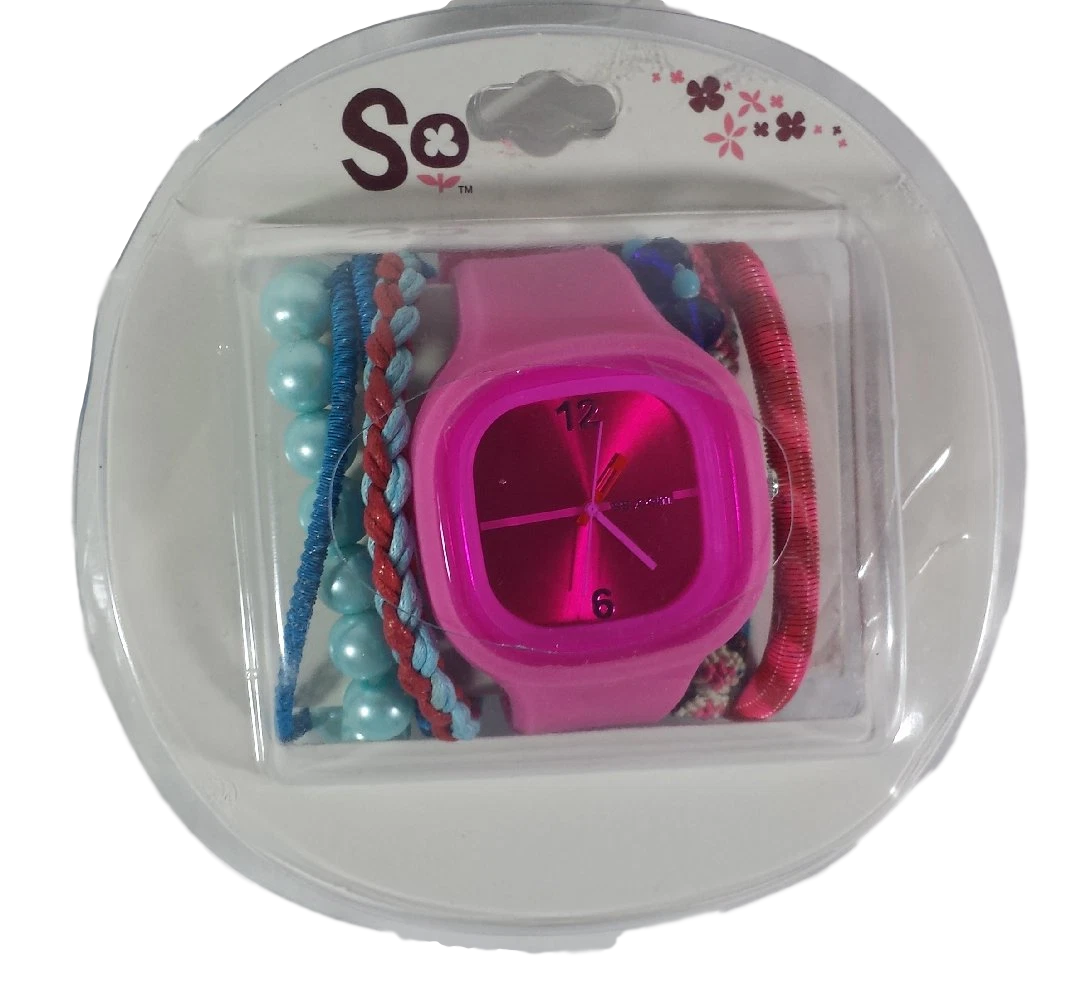 KOHLS Kid's Watch & Bracelet Set by So NEW IN PACKAGE Pink Blue Red Magenta