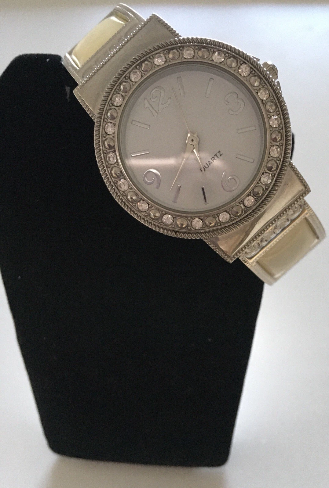 Kohl’s Crystal Bezel Silvertone Pearlescent Watch Bracelet