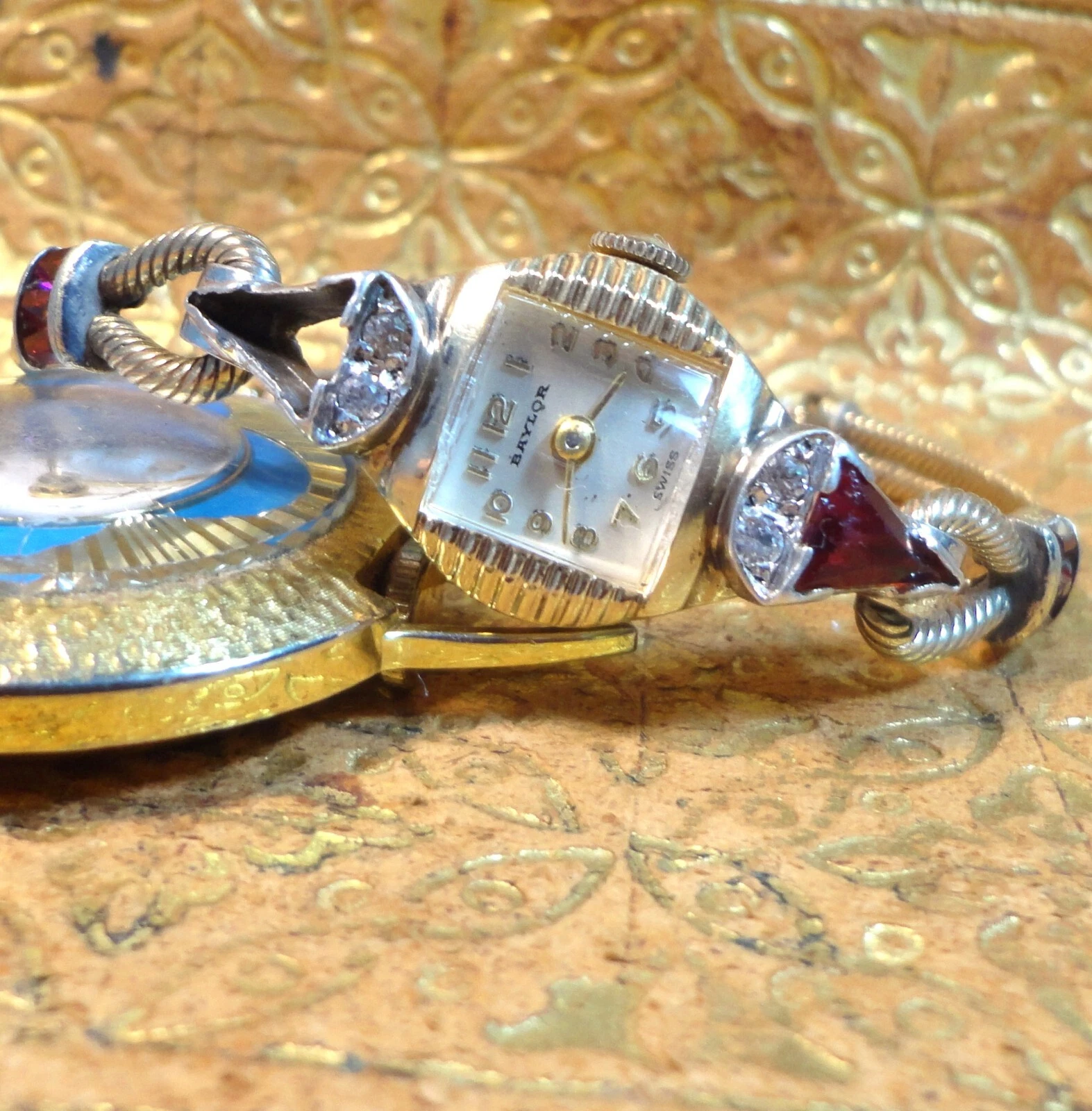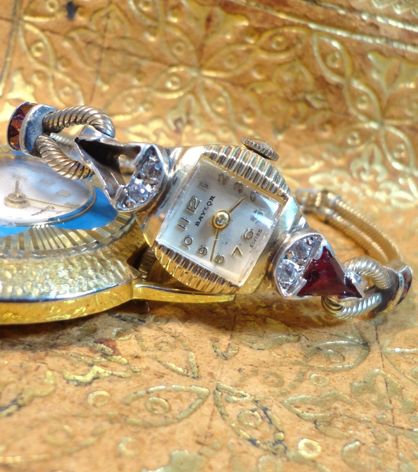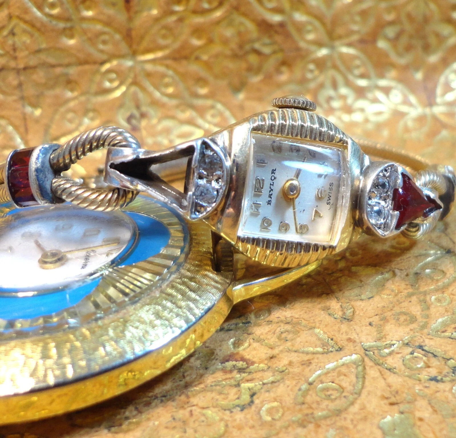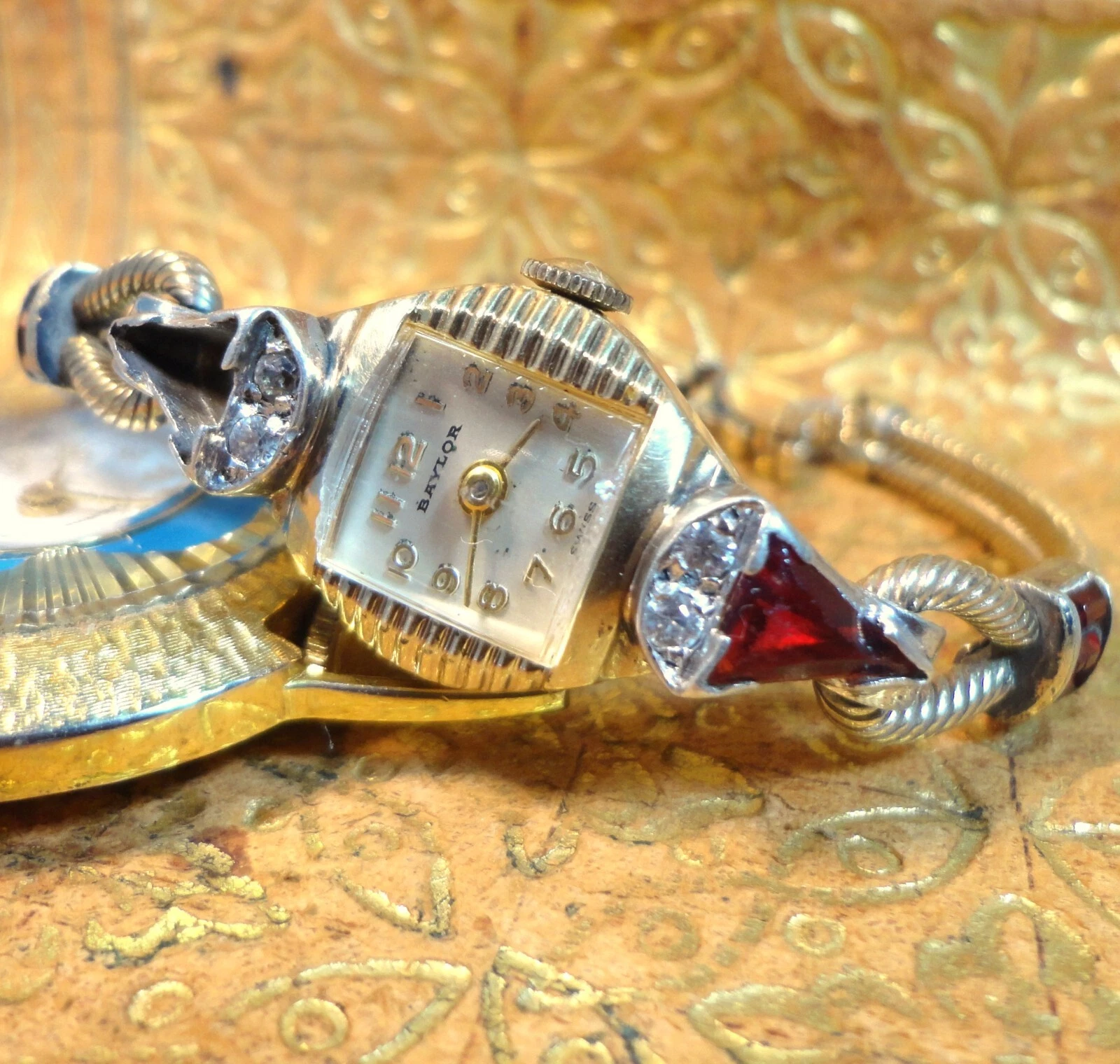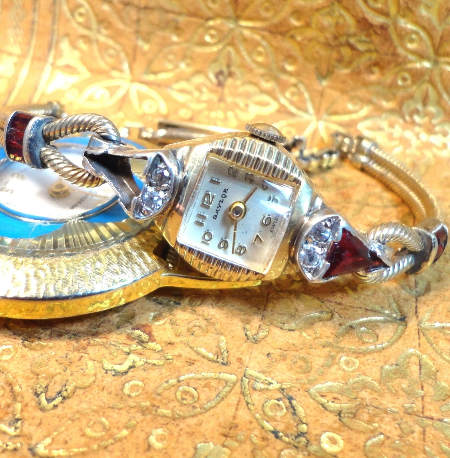 BAYLOR 17J 1299 Lovely RED RUBY  & DIAMOND DRESS Wristwatch KREISLER Ruby Gold