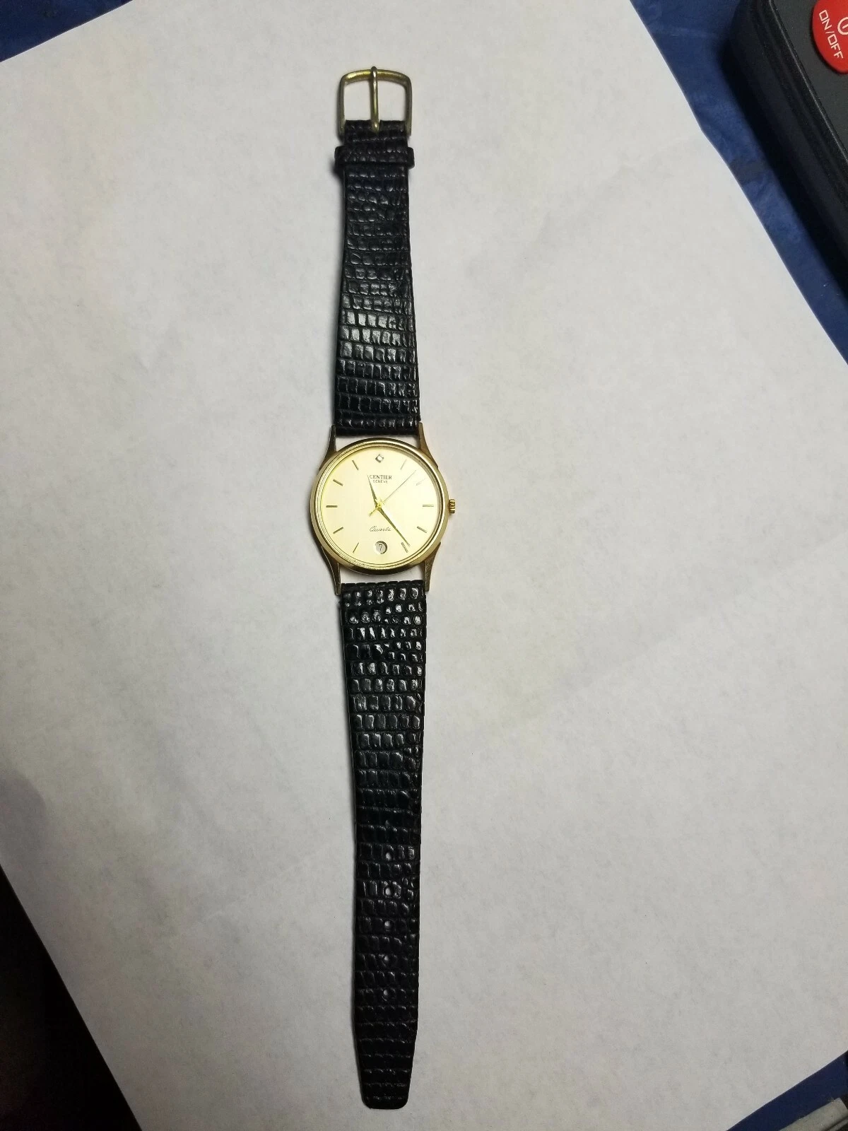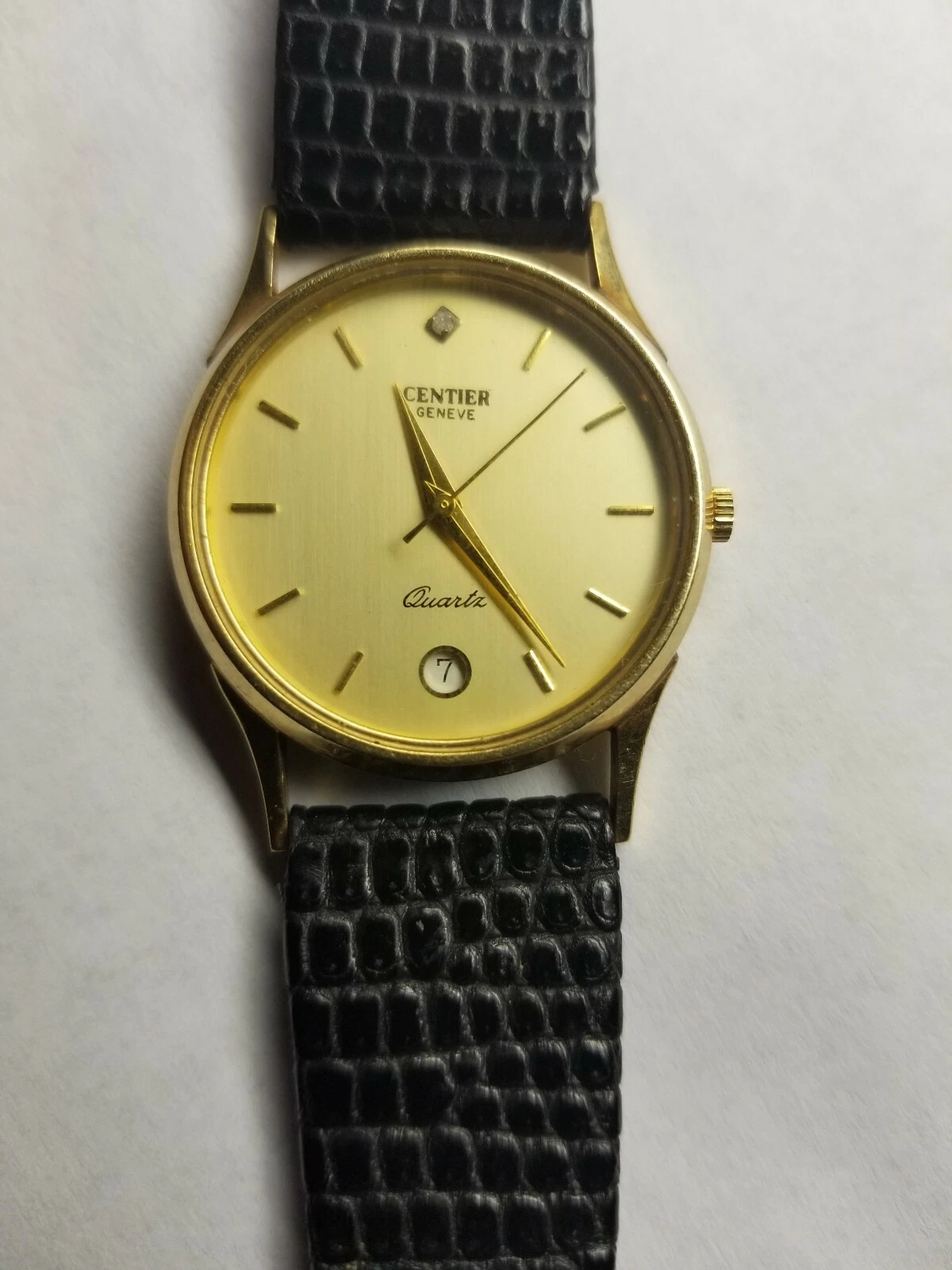 Centier Geneva Quartz man's watch 14K yellow gold Date saphire crystal