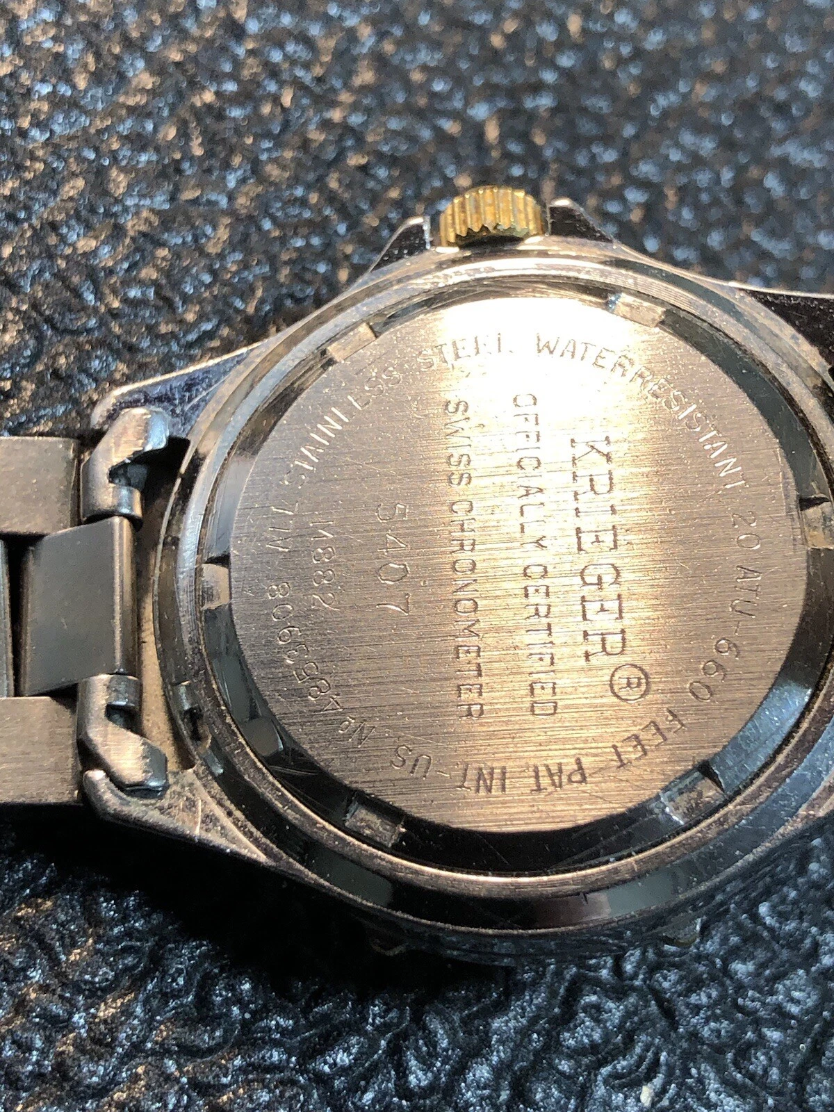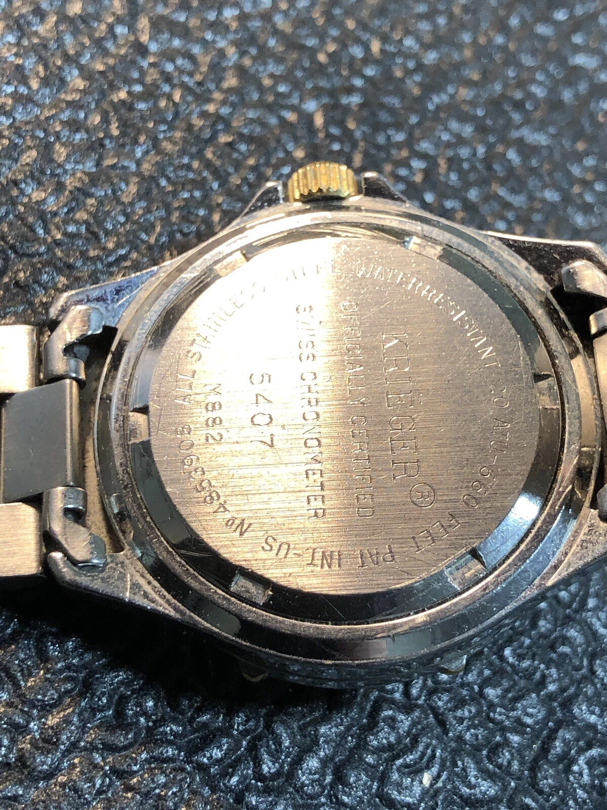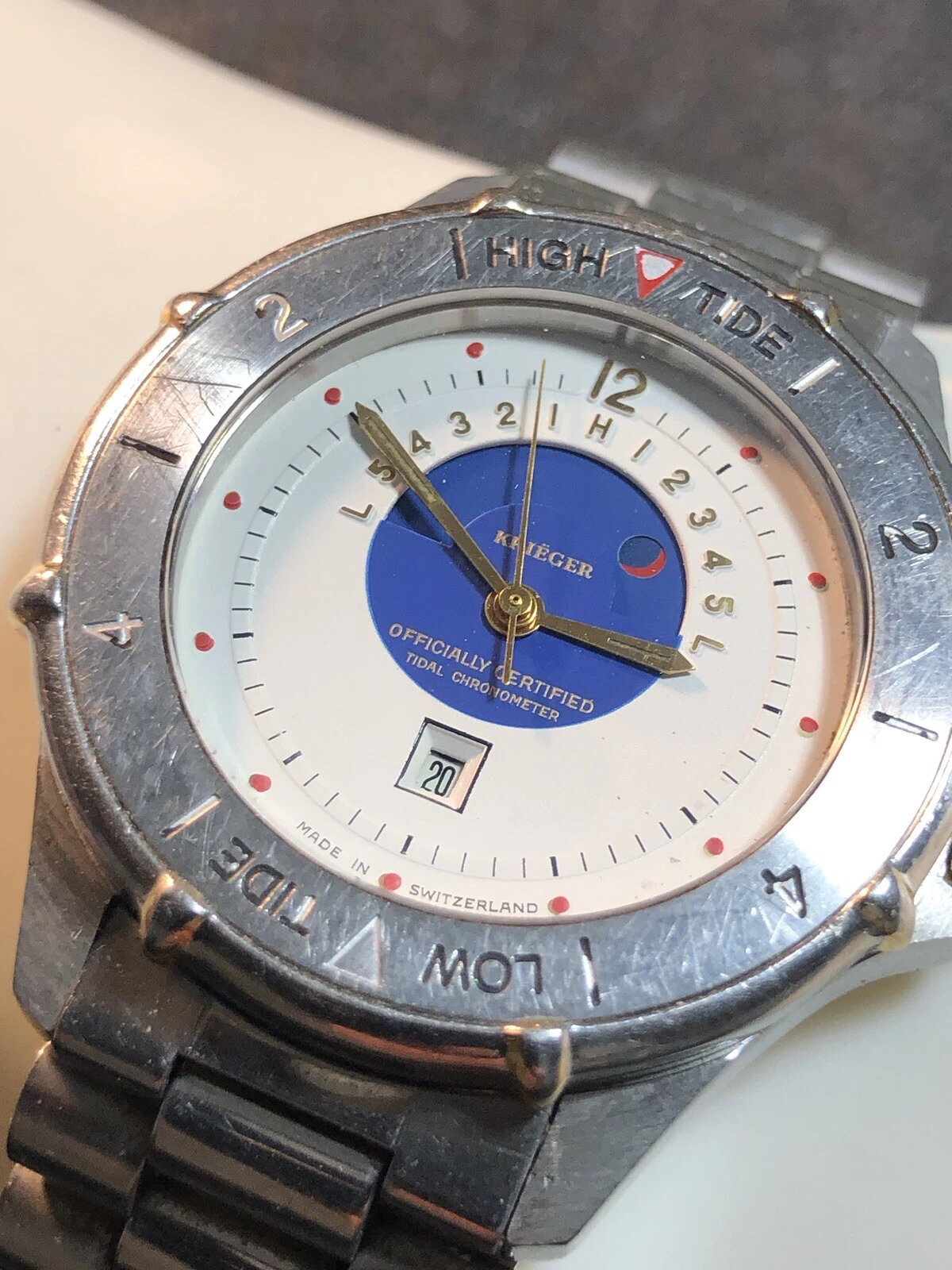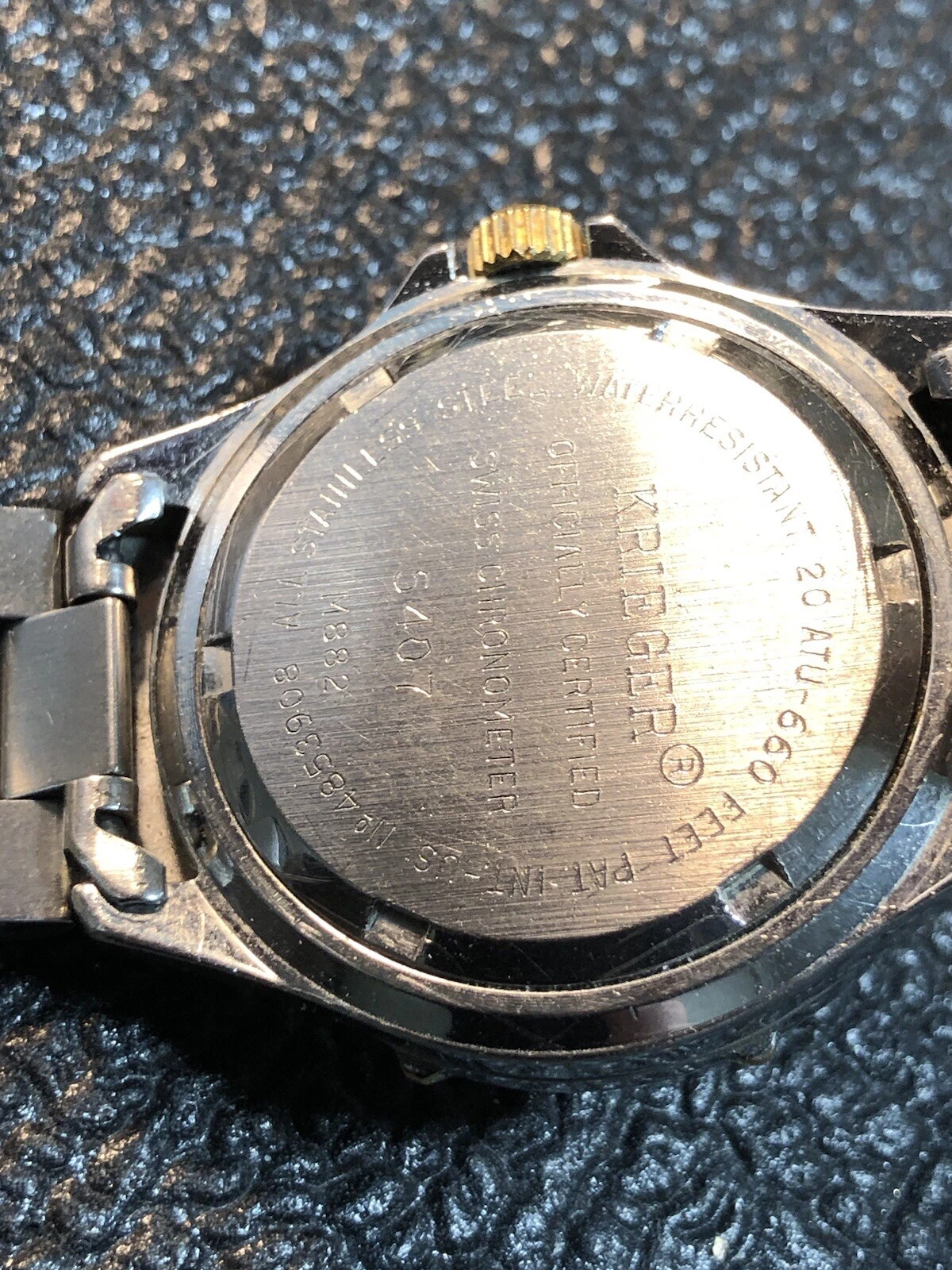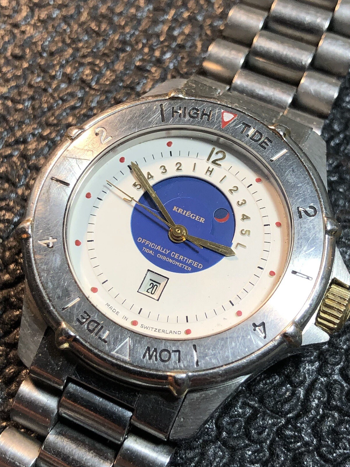 Rare Vintage Swiss KRIEGER Tidal Chronometer Watch WR200M W/Date Rotating Bezel