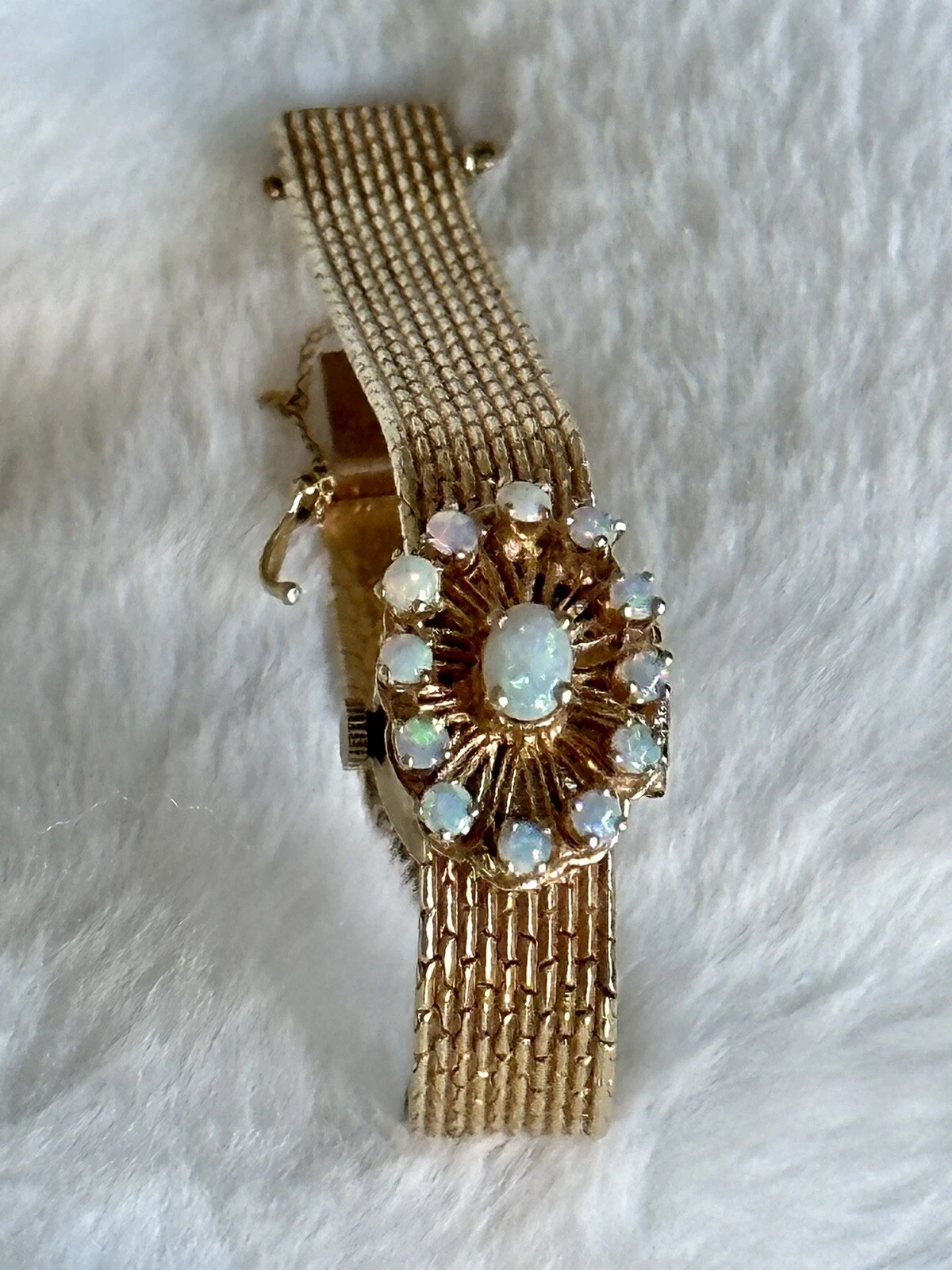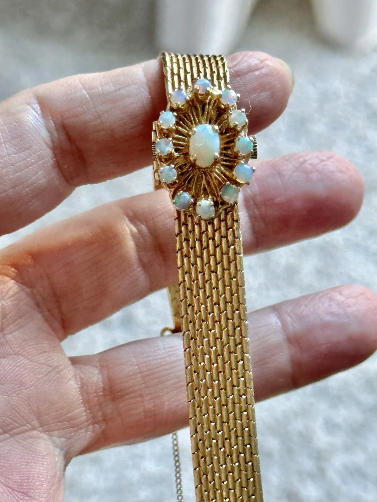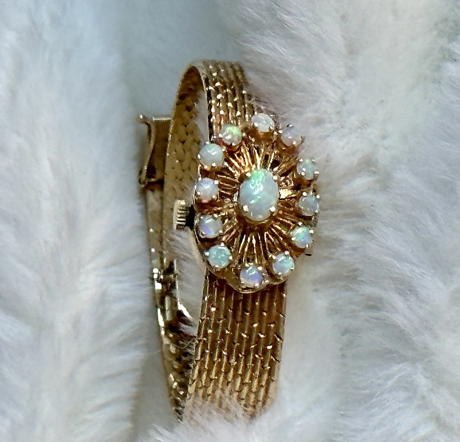 Geneva 14k GOLD Bracelet Opal Watch w/Cover Exquisite Design. Vintage 1970s 6.5”
