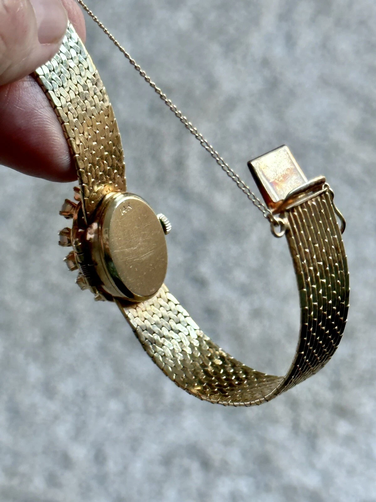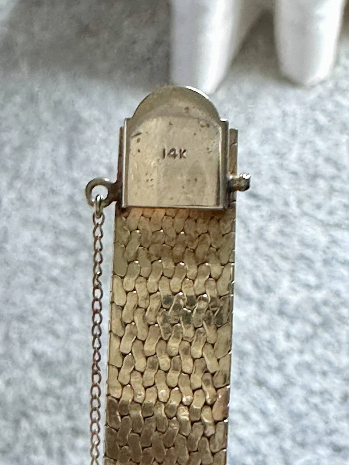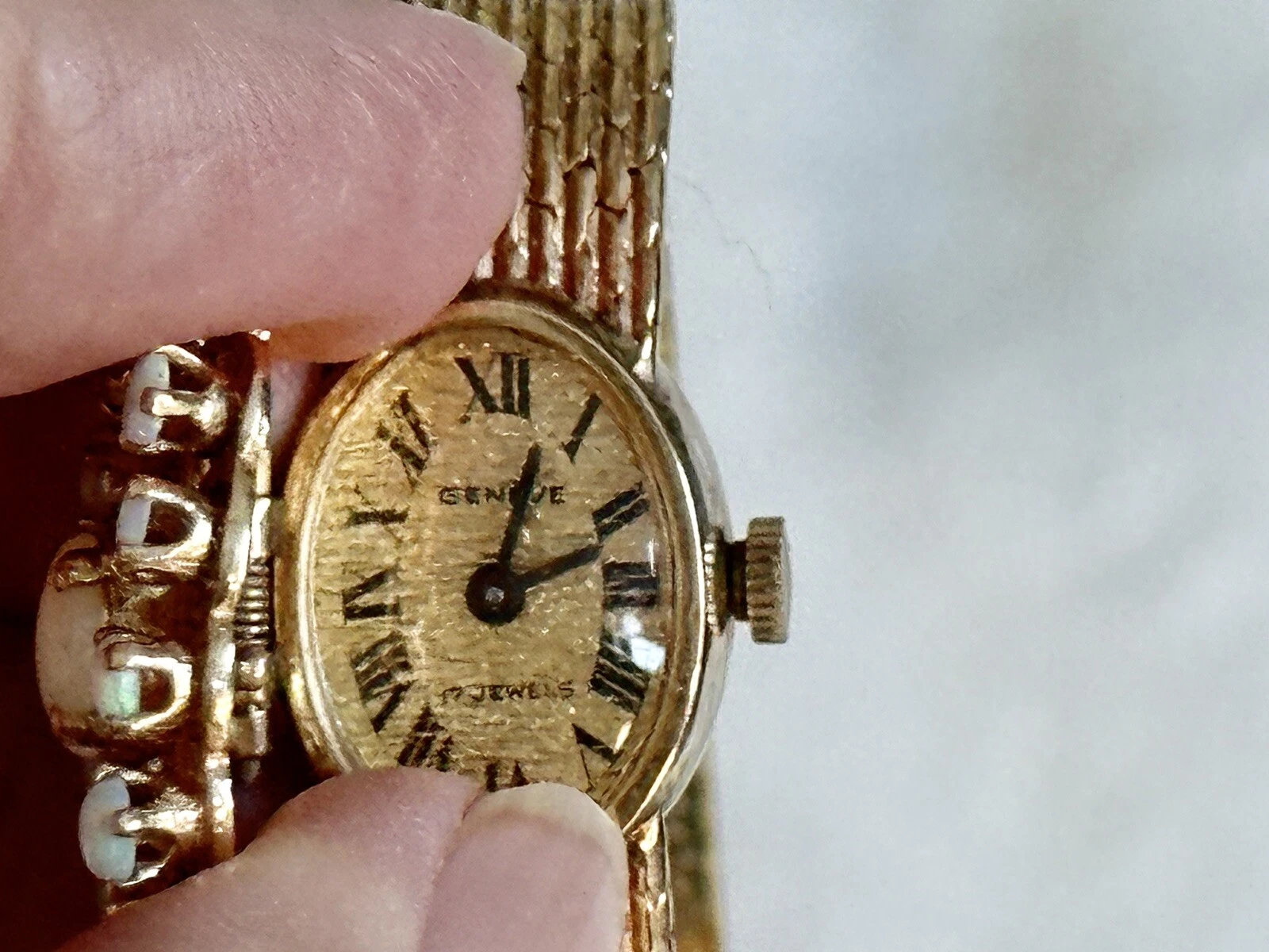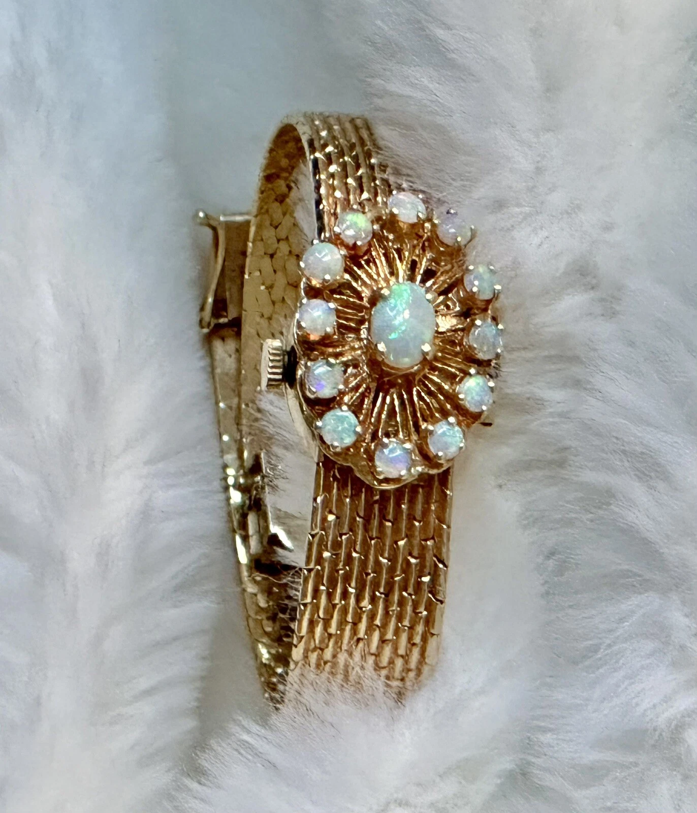 Geneva 14k GOLD Bracelet Opal Watch w/Cover Exquisite Design. Vintage 1970s 6.5”