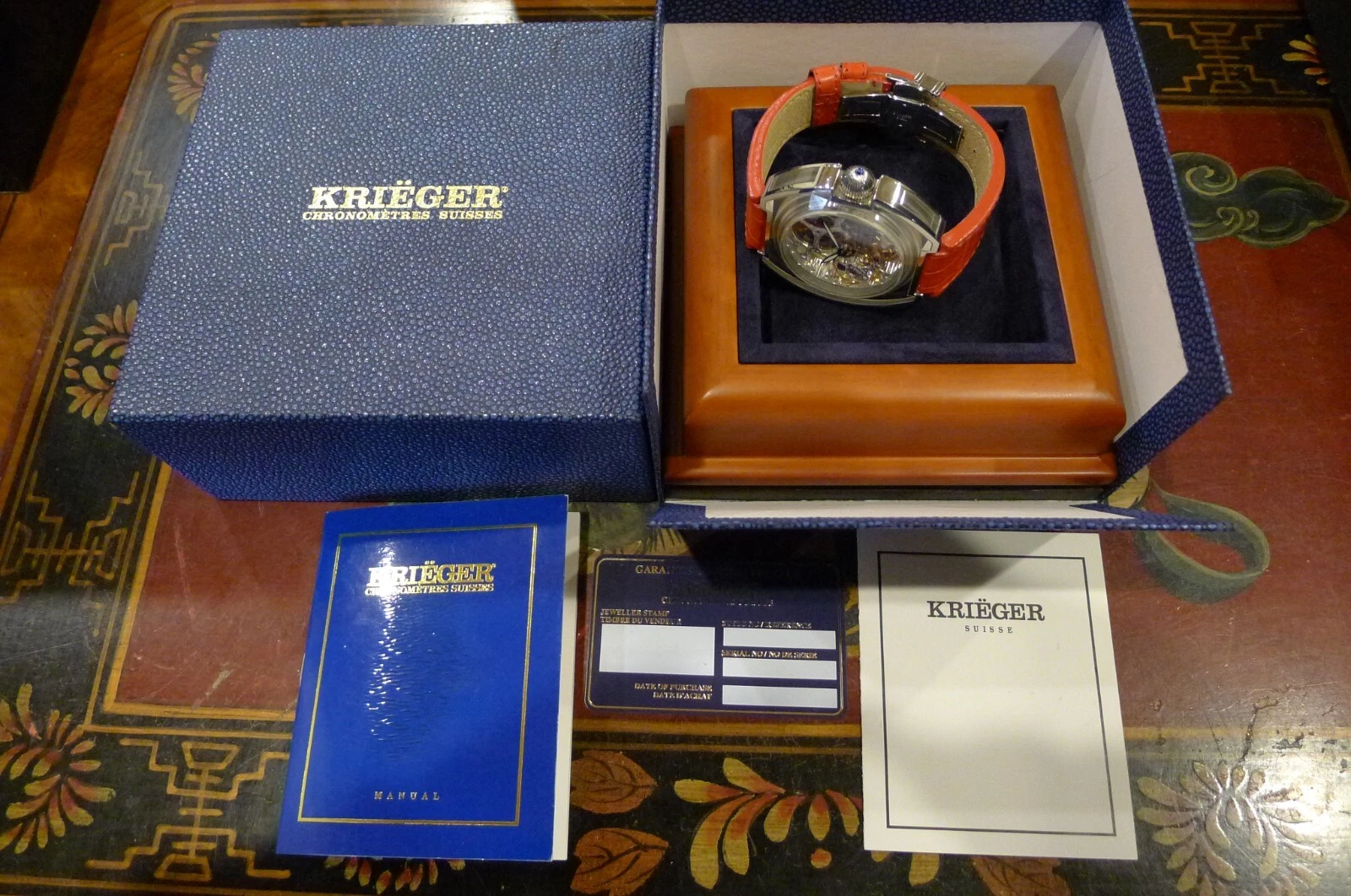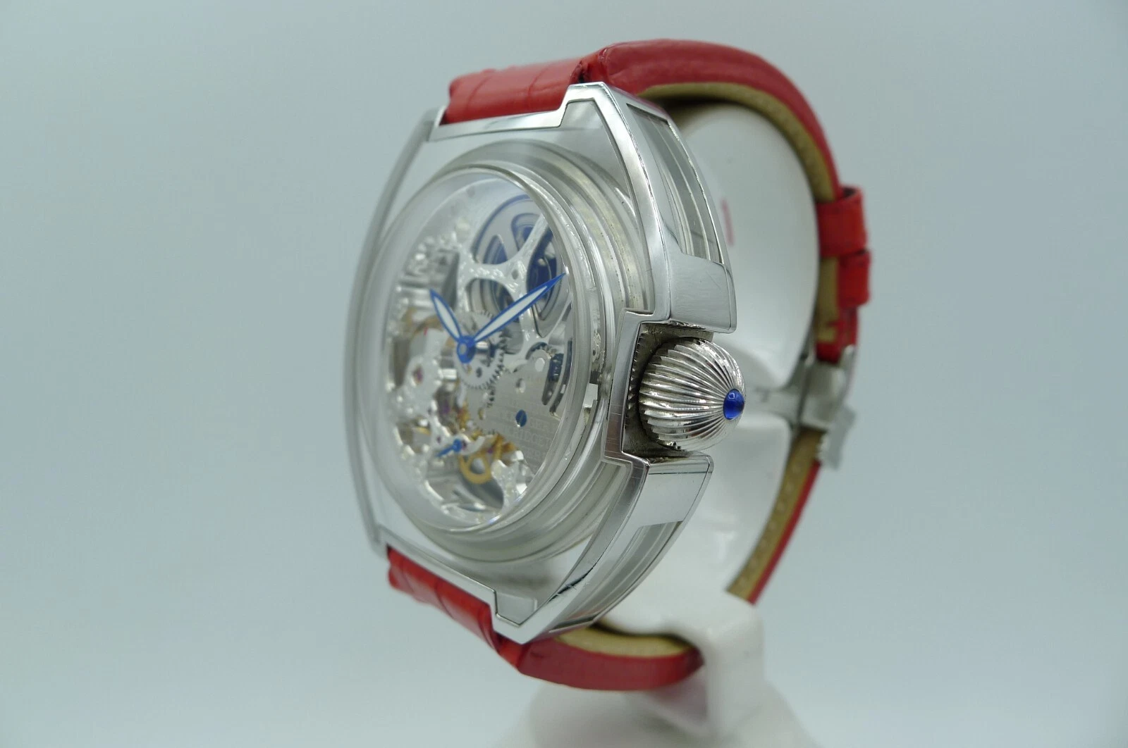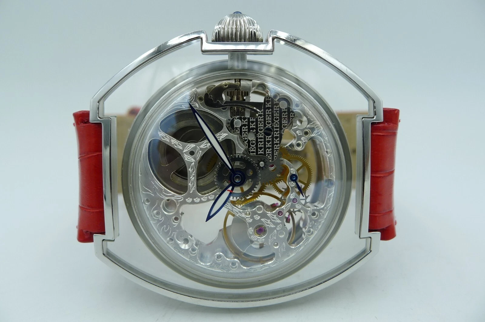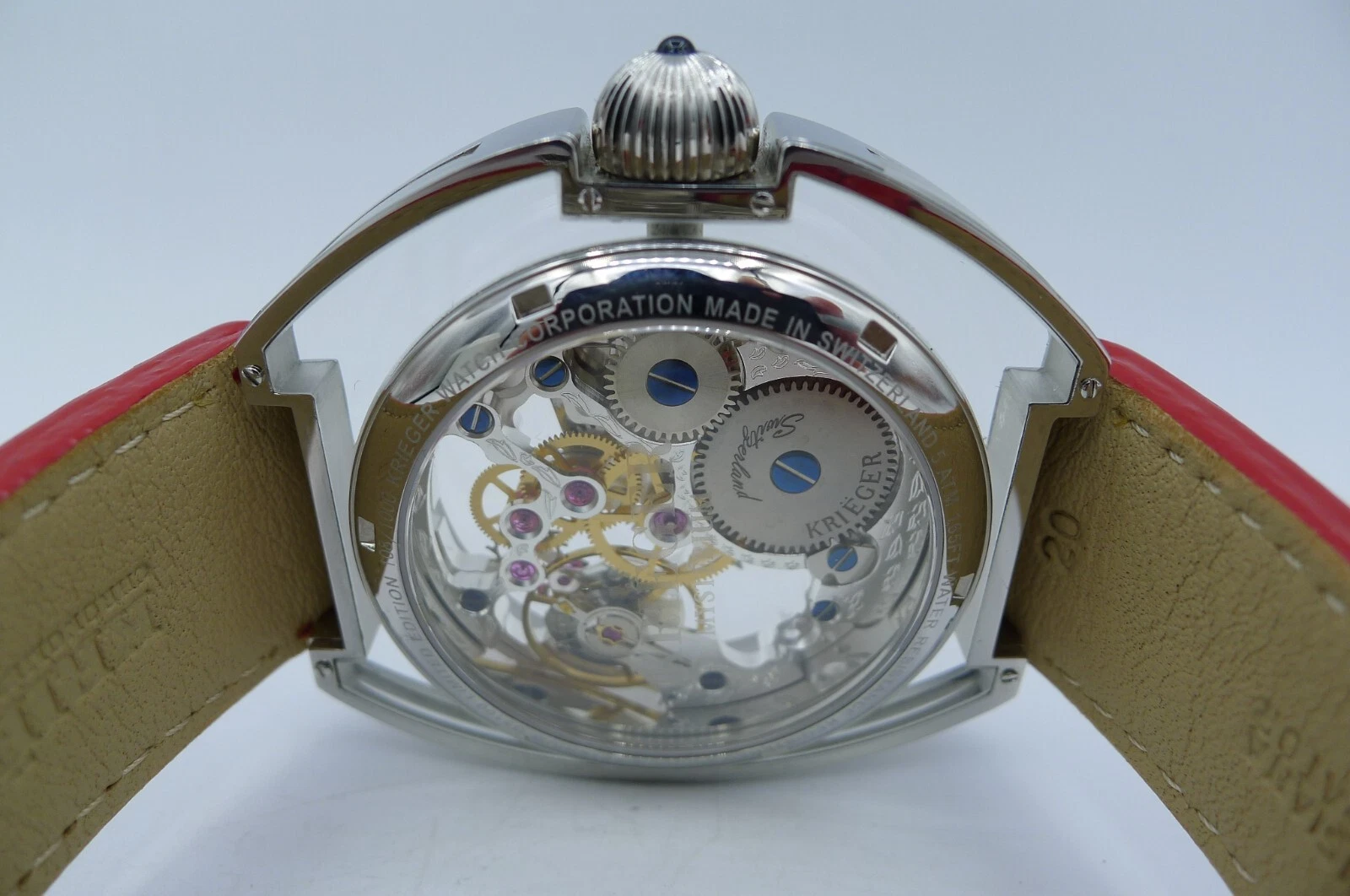 KRIEGER MYSTERIUM 48MM TRANSPARENT CASE SWISS MADE SKELETON RARE MINT SET