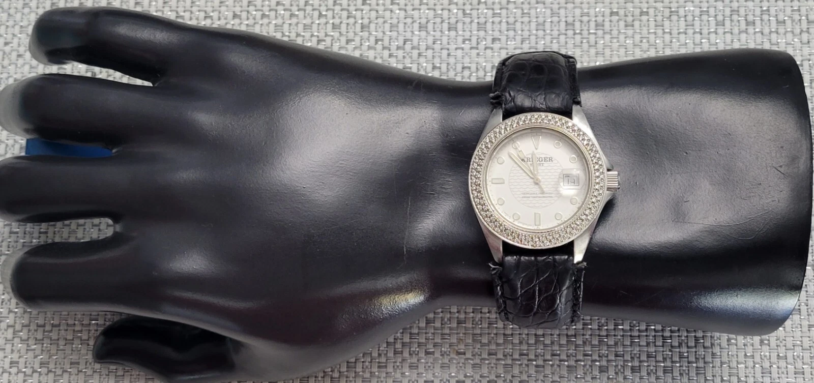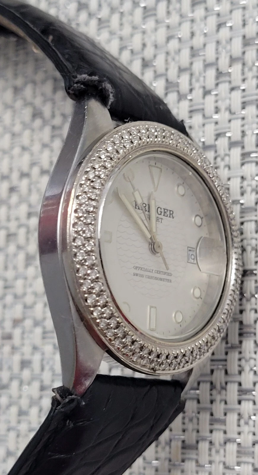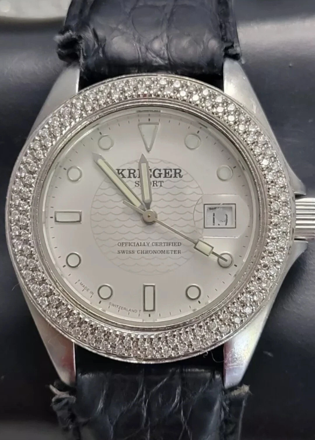 Krieger Sport 18k Gold Diamond Bezel 7 Jewels 37mm Swiss Quartz Unisex Watch
