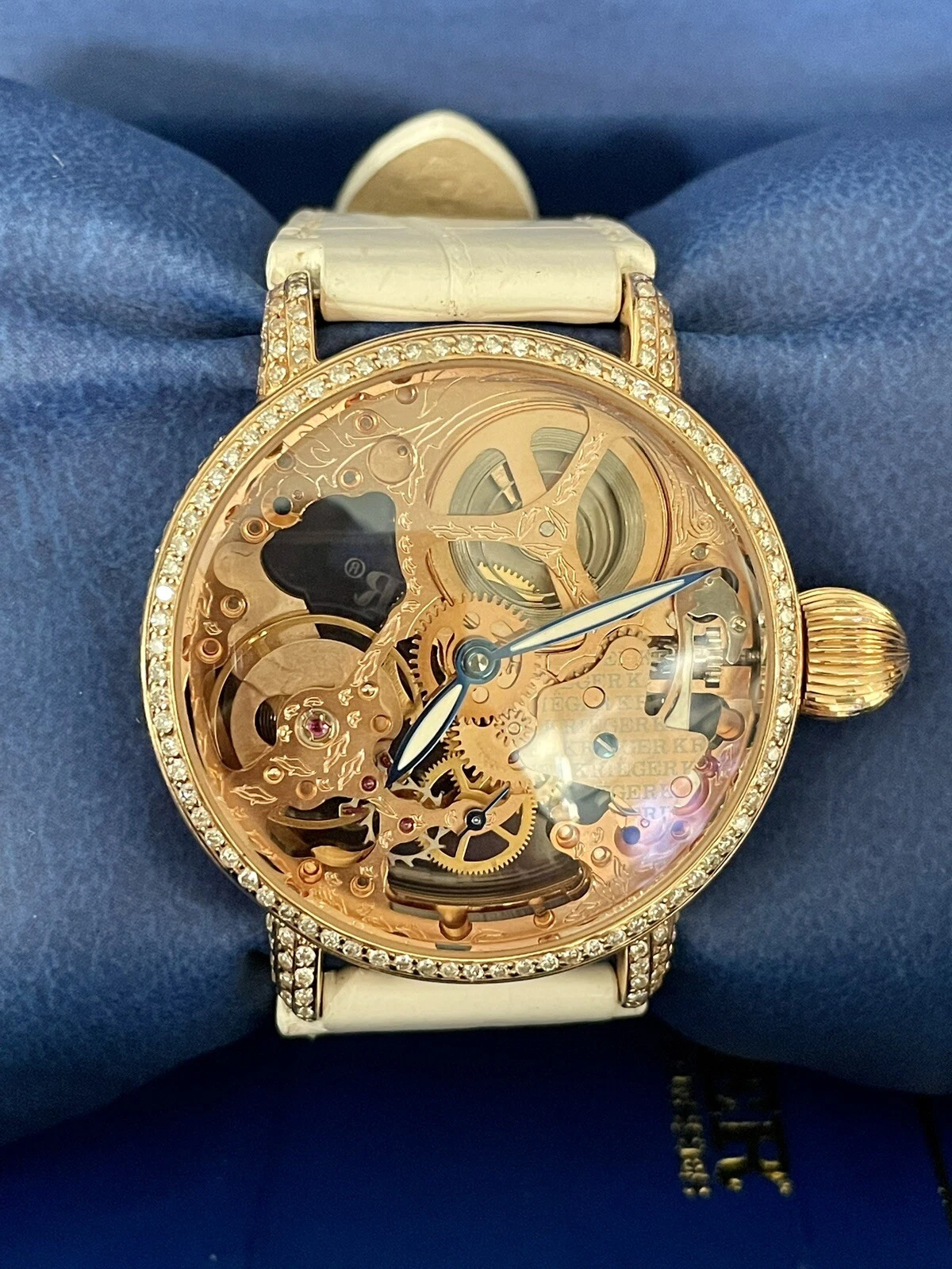 Krieger Gigantium  Diamonds Skeleton 18k Rose Gold Limited Manual Wind Watch