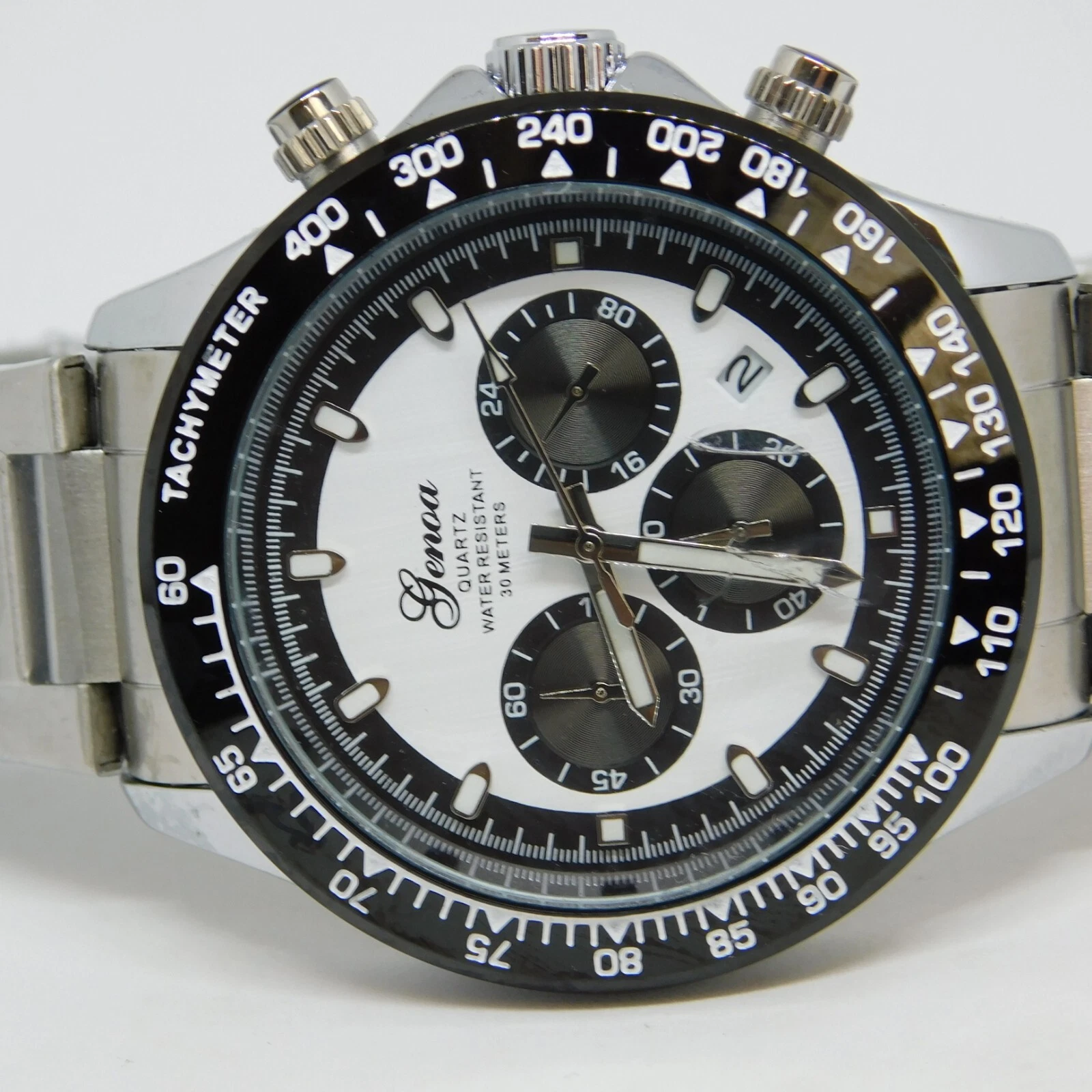 Genoa Tachymeter Silver Tone Quartz Analog Men's Watch Sz. 8 1/4" New Battery