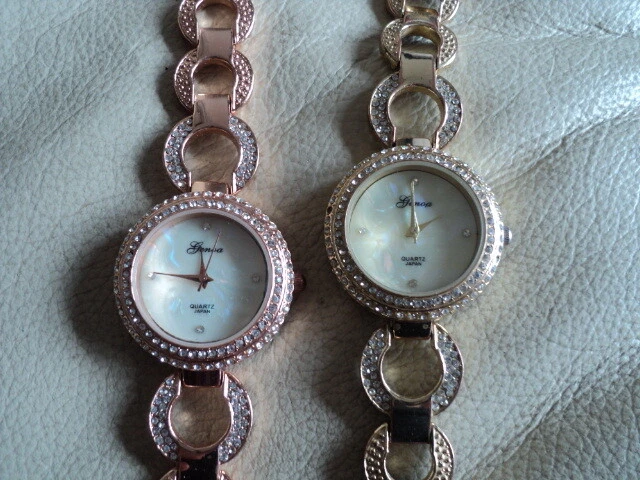 2 Ladies Genoa Crystal Quartz & Mother of Pearl Watch Working