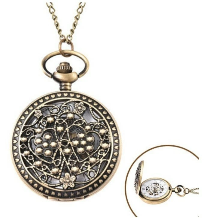 GENOA-Automatic Mechanical Hollow-Out Flowers and Dots Pattern Pocket Watch