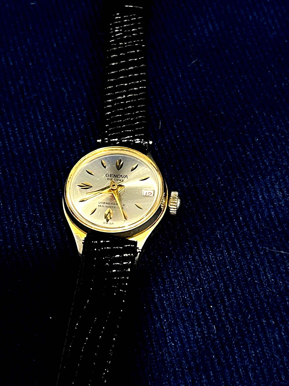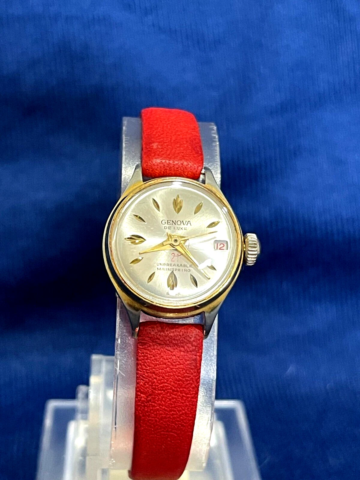 Nr. Mint Genova Deluxe Gold Wind Up 5 Jewel Watch Womens Waterproof Swiss Nice!!