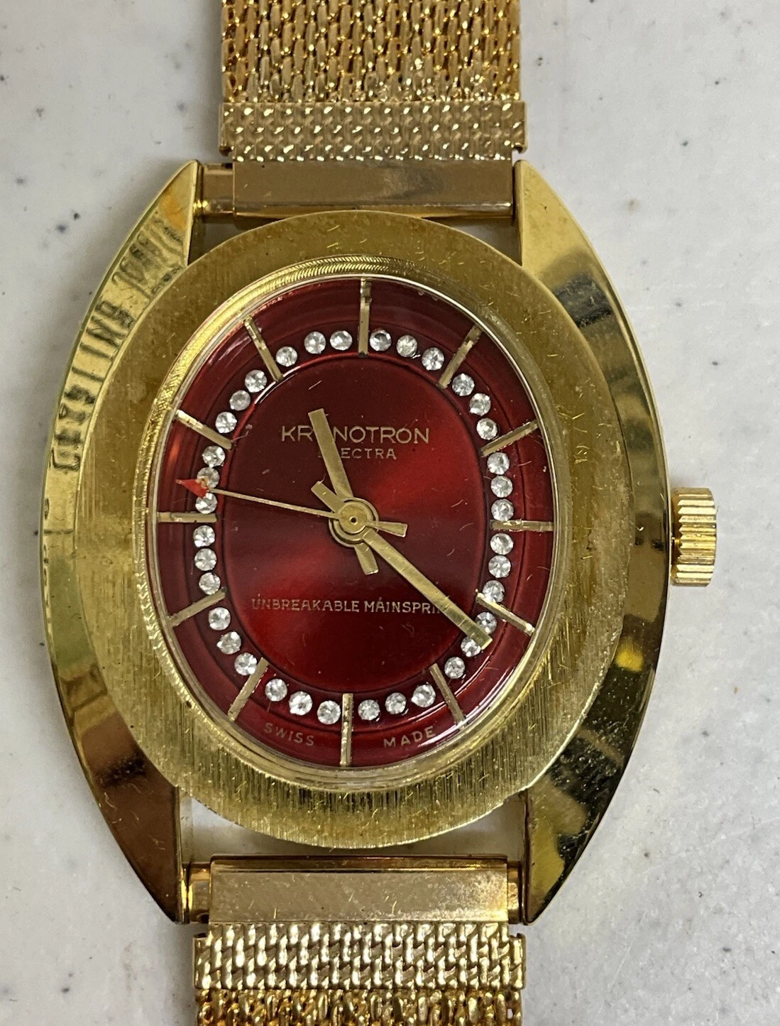 Kronotron Electra Red Face 1 Jewel Watch As/Is for Parts or Repair JL303